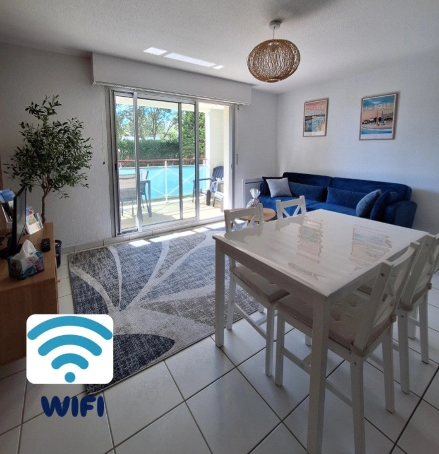 Chers vacanciers, Logement de 37 m² idéal pour les familles (entre 4 et 6 couchages) à moins de 5 minutes à pied de la place du marché, de ses commerces et de la plage (10 min). Parking privée à votre disposition dans une résidence calme qui comprend un salon séjour lumineux, une cuisine équipée, une chambre avec lit double et coin cabine. Un balcon terrasse (exposé Sud Ouest) et un box privé complètent le bien (sur demande) Forfait ménage : 45€ Linge : 35€ sur demande 🛜 WIFI disponible
