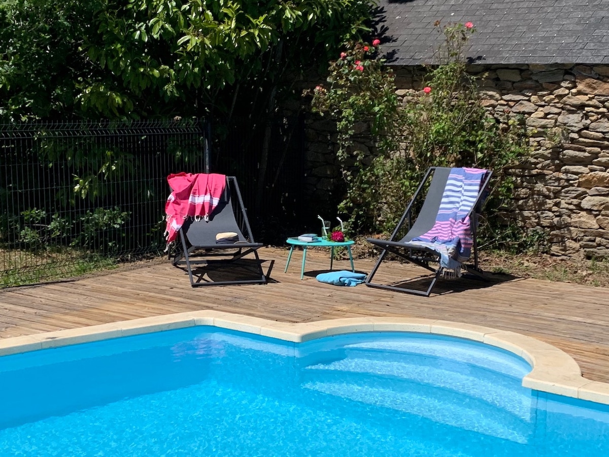 Kervigne Ferel -家庭农舍 + 温水游泳池
