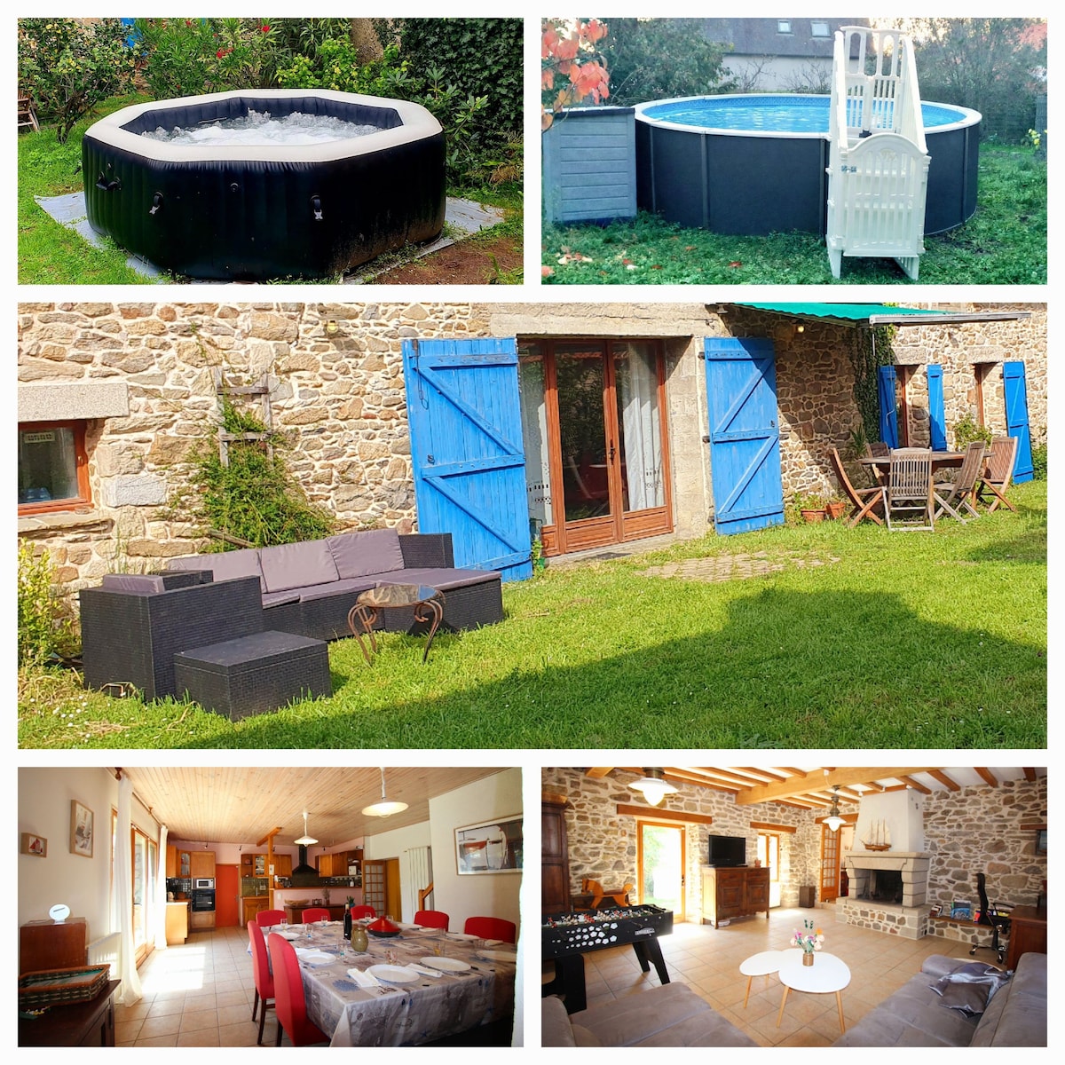 Pour un week-end ou un mid-week, des vacances en famille ou entre amis, une réunion ou un séminaire - venez profiter de cette jolie propriété entièrement rénovée et équipée pour votre plus grand confort. Piscine extérieure chauffée couverte, espace jacuzzi, salle de jeux avec billard - babyfoot - ping-pong, vaste pièce de vie avec cheminée, terrasse, mobiliers de caractère, WIFI, TV, etc... Surface 150m2. Terrain de 950 m2 clos. Située à seulement 200 mètres de la plage et du chemin côtier.
