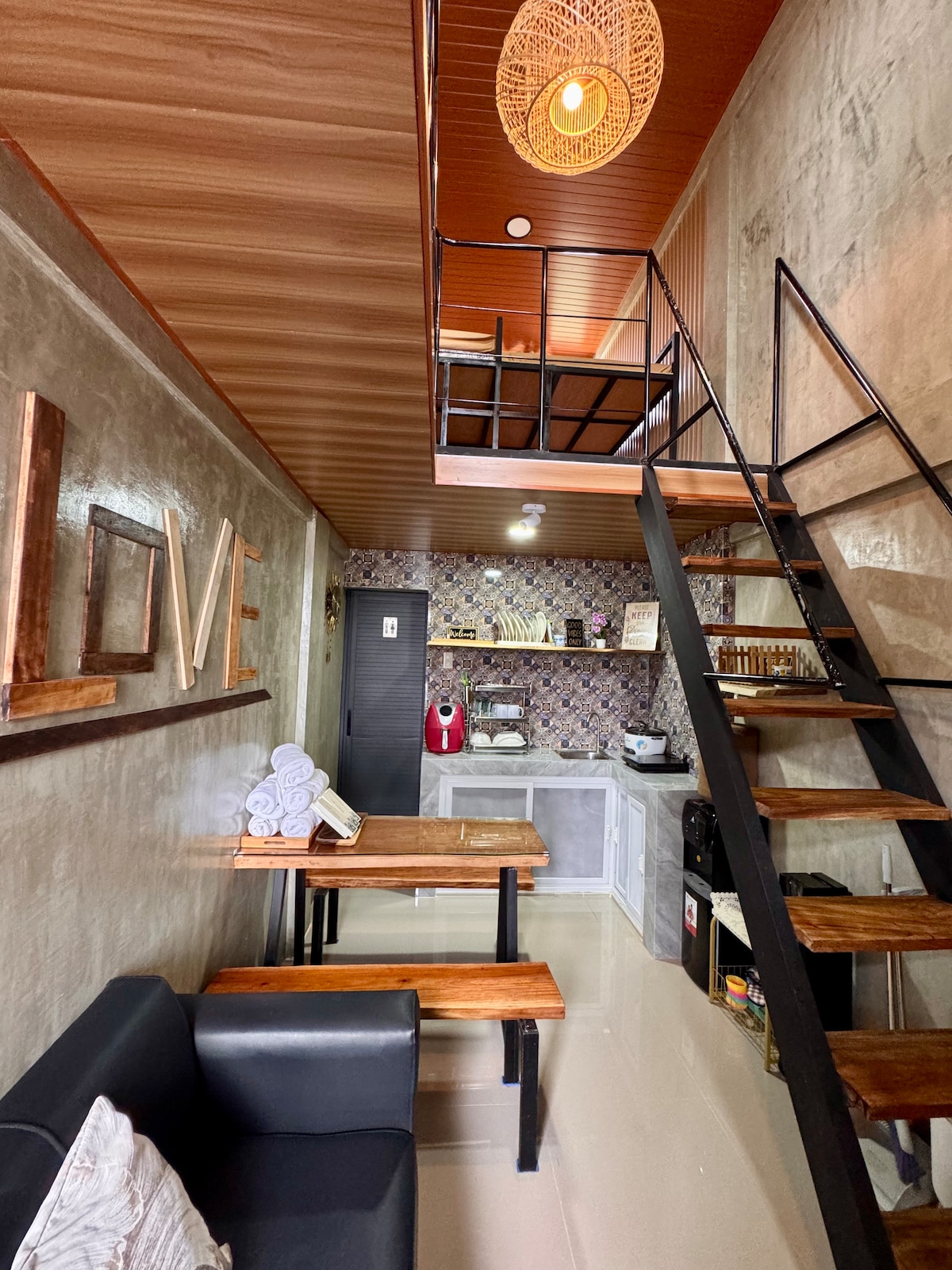 The ground floor is designed as a cozy couple’s room — perfect for partners looking to enjoy quality time together. Amenities include: TV with WiFi access Electric kettle and fan Air-conditioned room Microwave Refrigerator Private bathroom with shower and bidet Outdoor veranda ideal for relaxing Come and explore ELYU while staying in our unique Prefab House. Your comfort is our priority — we can’t wait to host you!