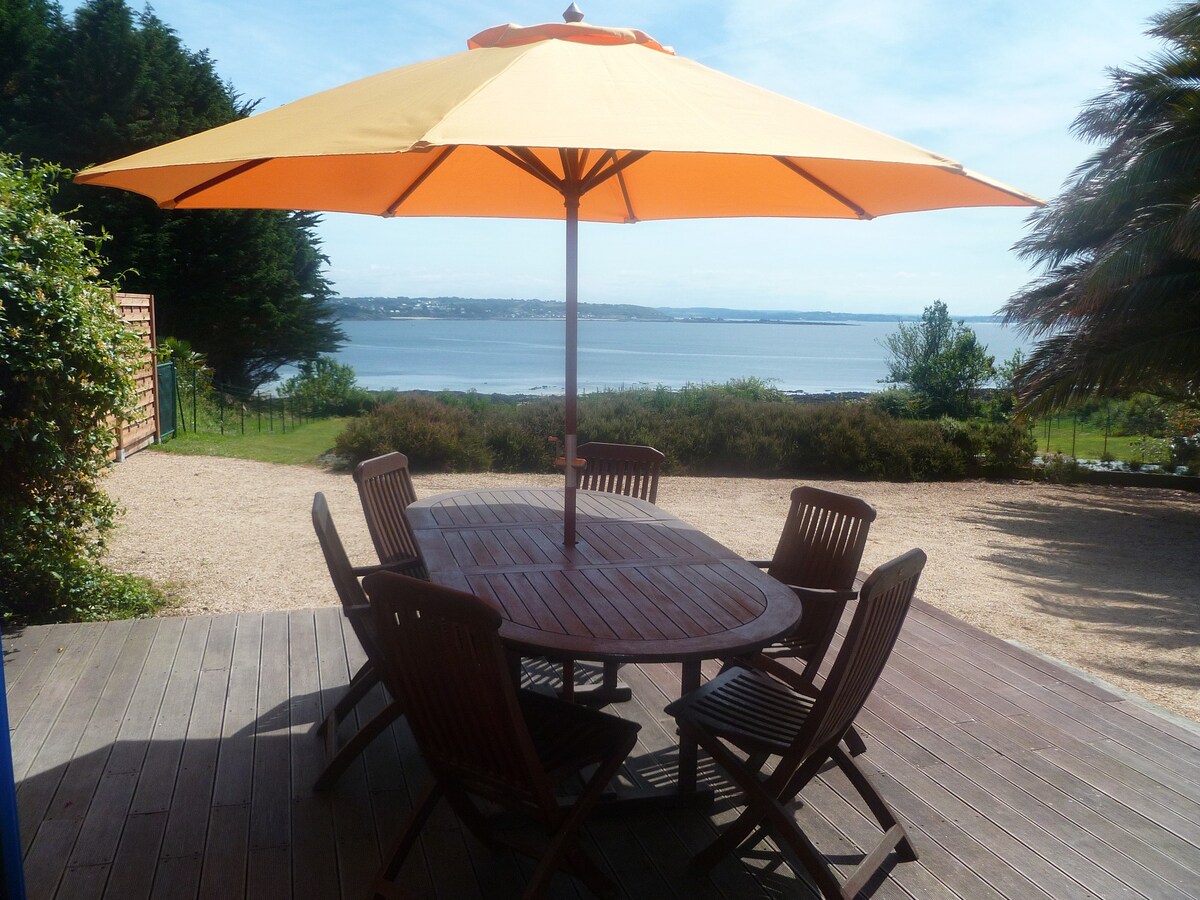 Studio attenant à jolie maison Bretonne avec terrasse Il se compose d'un espace salon, coin cuisine ainsi que d'une salle d'eau (douche et toilettes) au rez de chaussé. La grande chambre à l'étage est accessible par un escalier. Elle est composée d'un lit de dimension 160x200, rangements, petit canapé et TV. Espace extérieur accessible avec mise à disposition d'un salon de jardin.