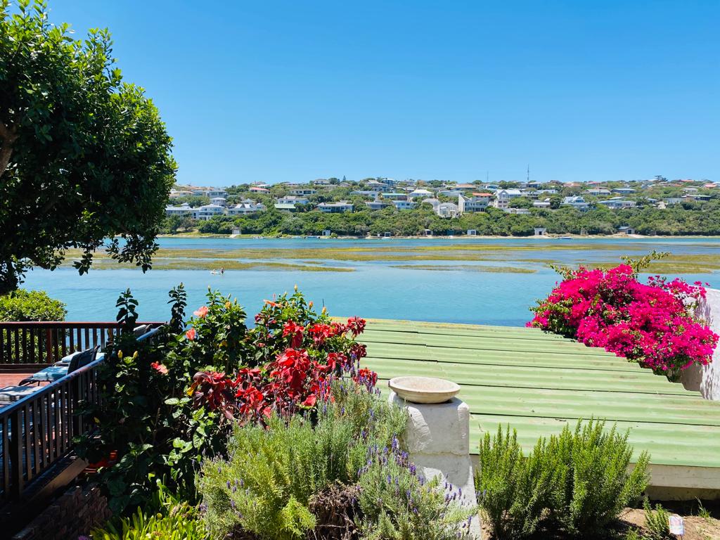 Stunning 4-bedroom riverfront home in the Royal Alfred Marina. Each bedroom has an en-suite. Modern African décor, open-plan living with stacking doors to a riverfront patio and braai. Two TV lounges, Smart TVs, WiFi, and solar power. Beautifully furnished with breathtaking river views—perfect for a stylish, relaxing getaway.