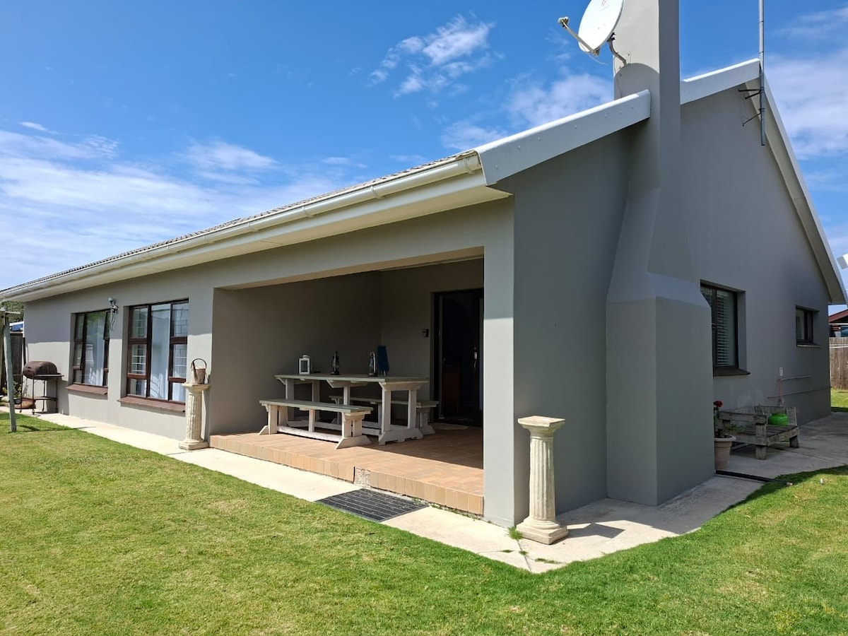short walk to Bushmans River (sunset beach) & shops Fibre WiFi large well sheltered north facing patio that opens onto large open plan living area with modern kitchen large TV in living area & TV in main bedroom with netflix, YouTube etc modern scullery with dish and clothes washers modern bathrooms with tank water and gas geysers - town water back-up Secure & down road from Hitec security