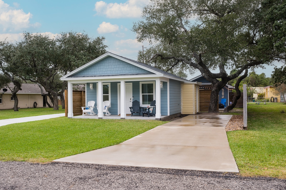 Welcome to the Coral Cottage. This adorable 1 bedroom/1 bath detached cottage has a tiny house feel is perfect for an escape to the beach, a fishing weekend, or a romantic getaway. This house was originally in Old Town Port Aransas, but was moved to its current location and completely remodeled including shiplap feature walls and reclaimed wood accents.