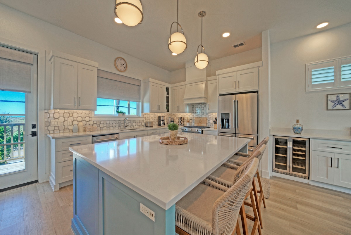 Bring the whole family to this great place with lots of room for fun. Welcome to Somewhere South! This home is a 4 bedroom, 4.5 bath stilted beach home, completed the Summer of 2021 — just minutes from the beach and downtown! Beautiful new construction in a highly desirable location on 11th Street. Community pool located just one house over shared with only 5 homes. Ample parking for 4 cars and an additional golf cart.