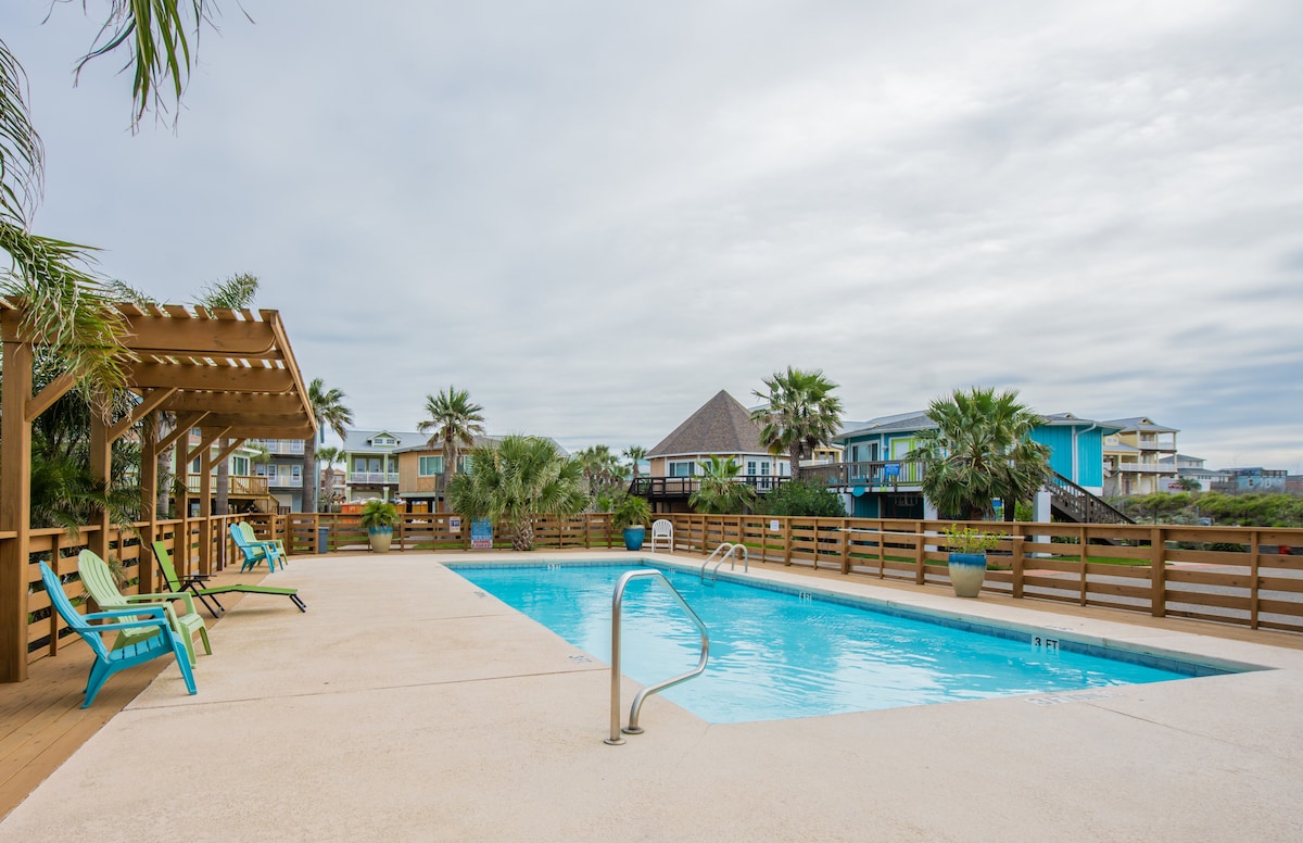 This 3-bedroom luxury condo is in a prime location & has EVERYTHING you need for an amazing vacation to Port Aransas, Texas! • Private Pool- Heated upon Request(24hr notice MUST be given prior to check in date) • 5 minutes to Beach! • Golf cart friendly! • EV Charger • Private Pool Area w/ Mini Fridge • Open Concept Living Space • Fully Stocked Kitchen • Washer & Dryer in Unit • Beach Supplies & Toys • Weber Propane Grill • Corn Hole for Outdoor Fun • Smart TVs in Every Room
