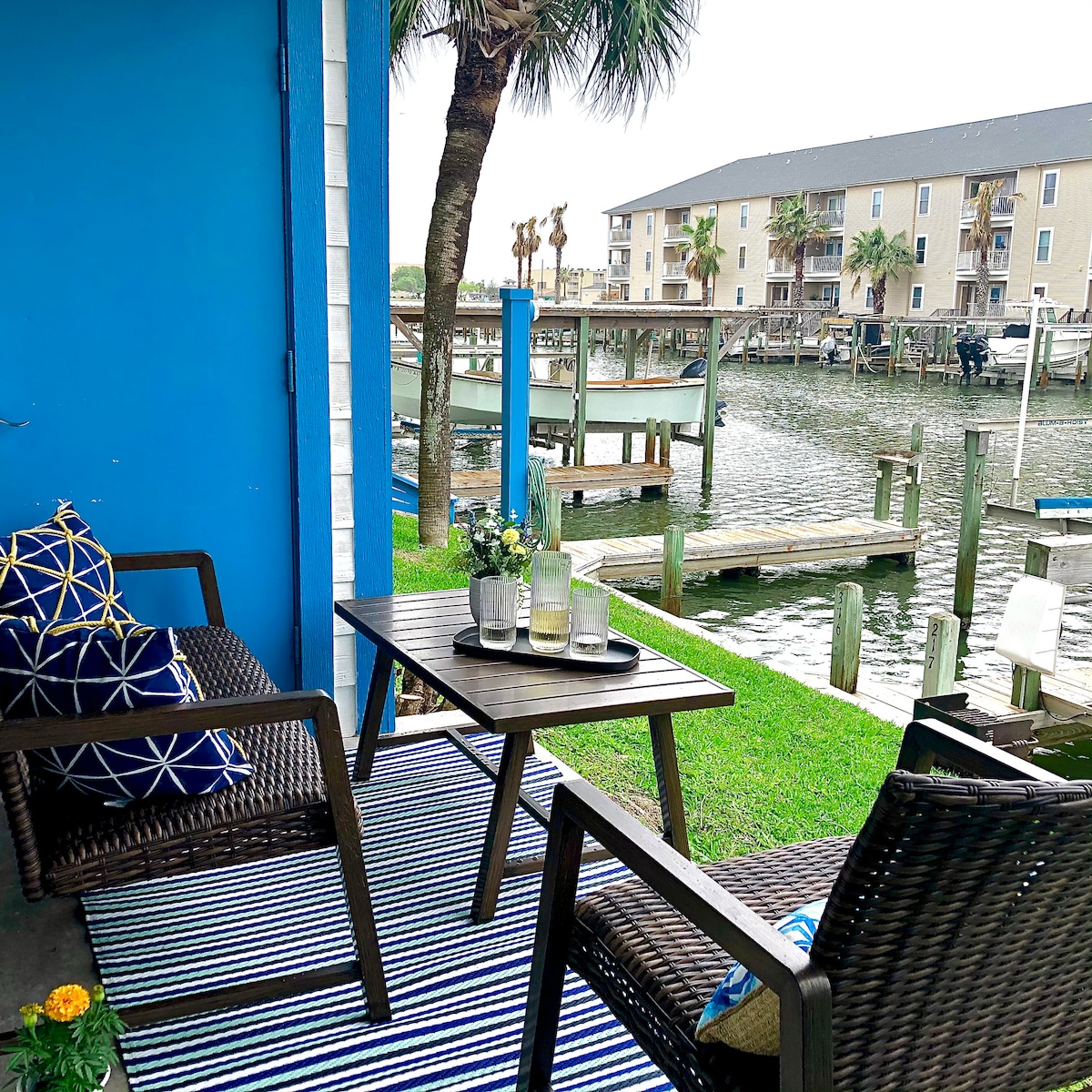 Howdy! Our vacation beach king bed suite is on the north Padre Island, the safest place in Corpus Christi. We are right on the canal and ground floor. No steps! Enjoy fishing from our private back porch and shared fishing docks. Beautiful water view at the updated Swimming pool and hot tub. One king bed in the bedroom, Daybed with a trundle & one queen sofa bed in the living room. Close to the beach and conveniently located to bars and restaurants. Come and enjoy this beach paradise.