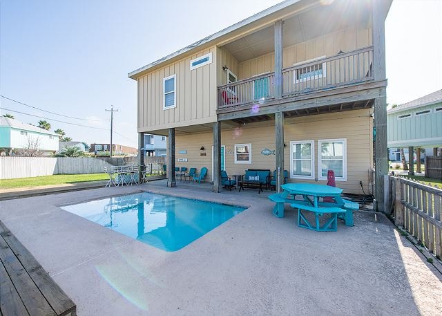 Welcome to Brock's Beach Pad! - your private retreat offering everything you want in a Port A vacation! ~Brand-new 4 bedroom home with full kitchen, private washer/dryer and all the comforts of home ~Private deck with Gulf views! ~Gorgeous PRIVATE swimming pool! ~Easy beach access! The Beach walkover is just steps away ~Beach walkover is golf cart friendly to cruise on and off the beach ~Wonderful entertainment options - 3 arcade machines and outdoor games such as cornhole and connect 4