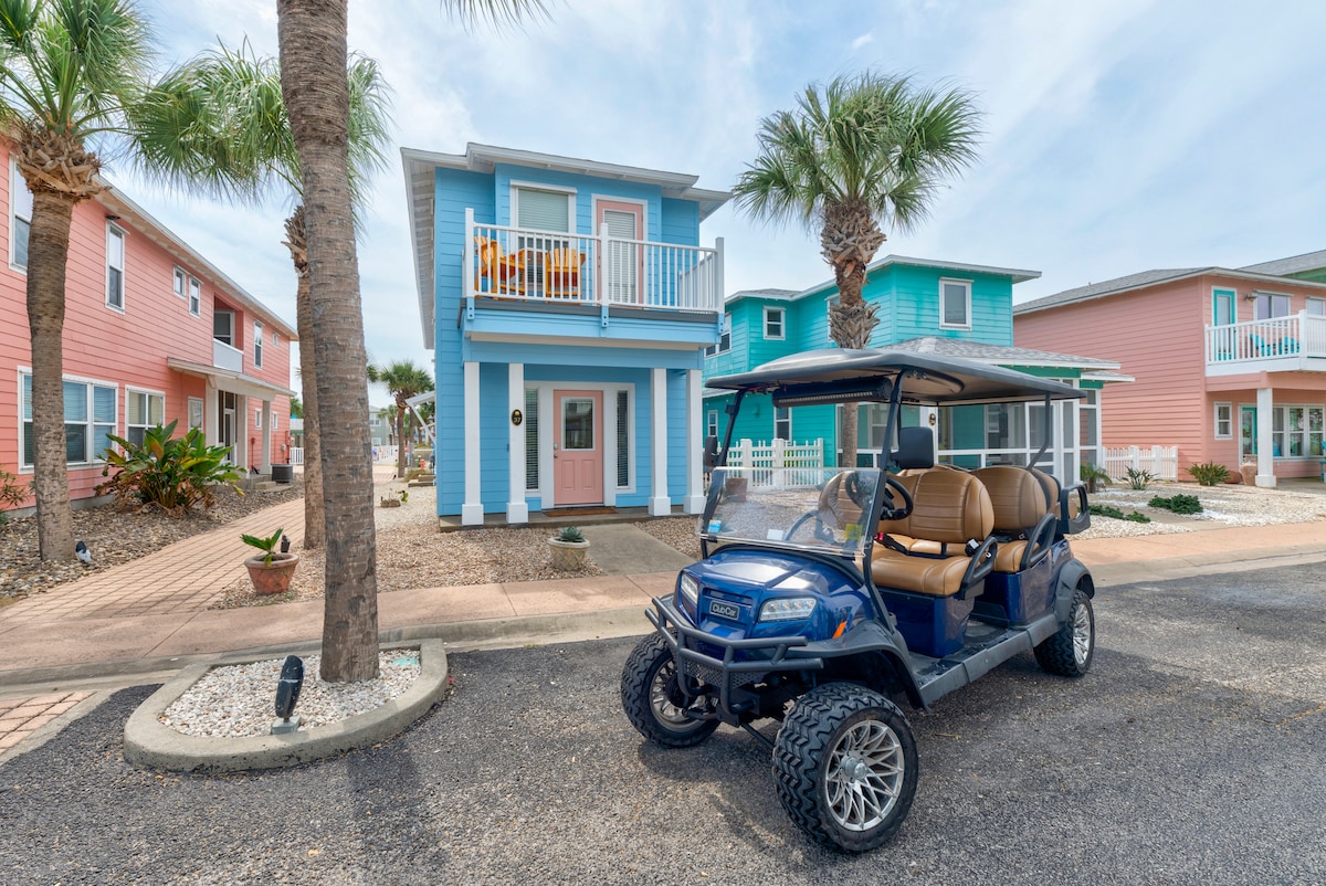 海滩房源,带泳池和带围栏的庭院 | 高尔夫球车