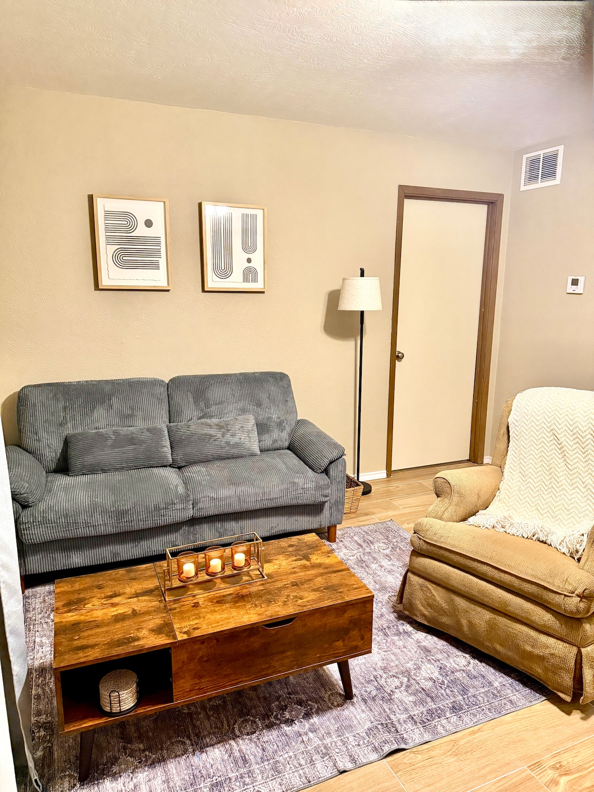 Traveling to this area for work and need a comfy home-away-from-home for awhile? Generous discounts are available to save on longer stays - both weekly and monthly! Relax and unwind in this calm and peaceful apartment. Calming, muted colors with happy accents of turquoise create a warm welcome as soon as you walk in. Everything is ready for your visit, with an eye towards creating homey comfort. After a long day at work, unwind in the peaceful ambience, and float into a deep sleep in the quiet,