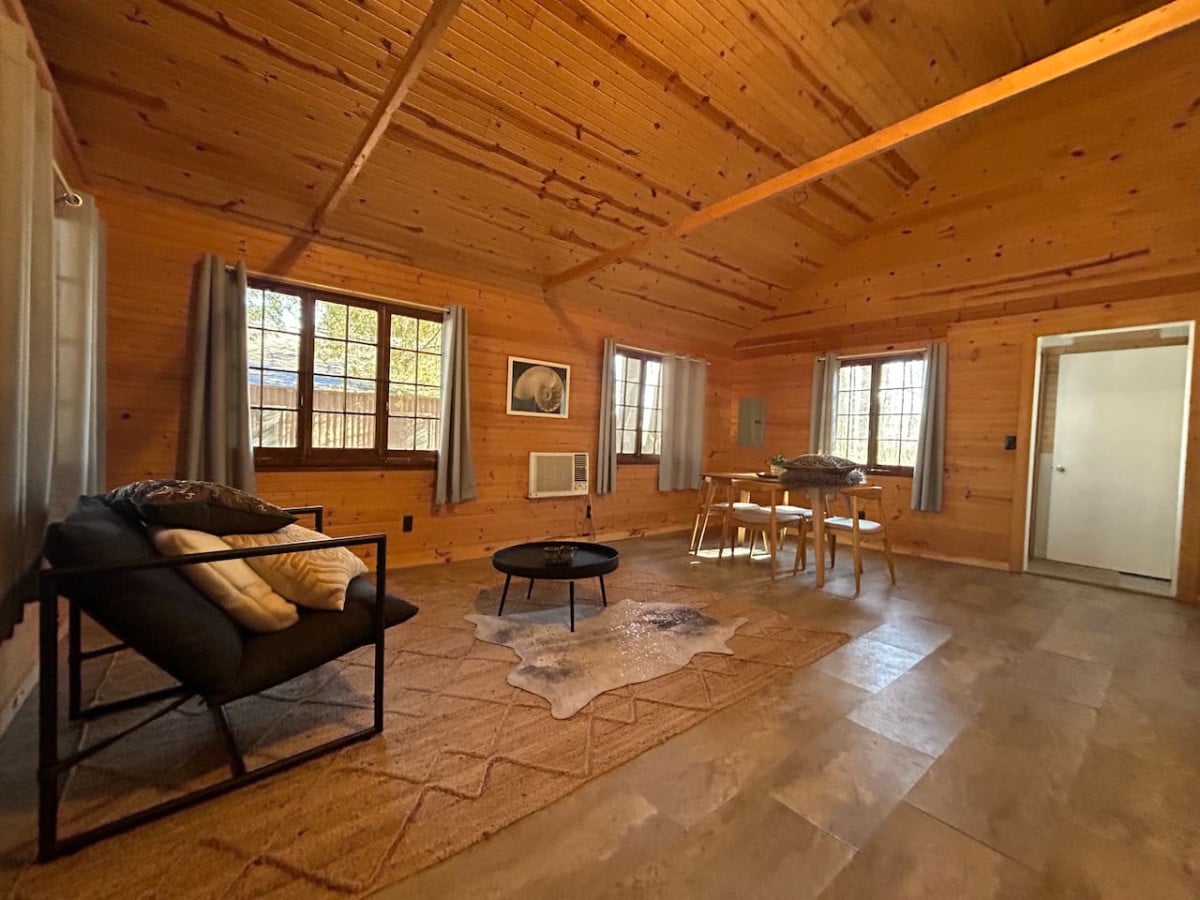 Your creative sanctuary: a tranquil 2-bed cabin on 6 private wooded acres. It’s designed to help you unplug. Instead of TV, find art supplies & instruments waiting for your imagination. Play records on the vinyl/bluetooth speaker. Read by the fireplace. Let the kitchen inspire your baking. Explore Lake Huron, or hike & birdwatch at Port Crescent State Park. Evenings bring forest stargazing. In final relaxation, enhance your stay by renting the mobile sauna. Message us when your creativity peaks.
