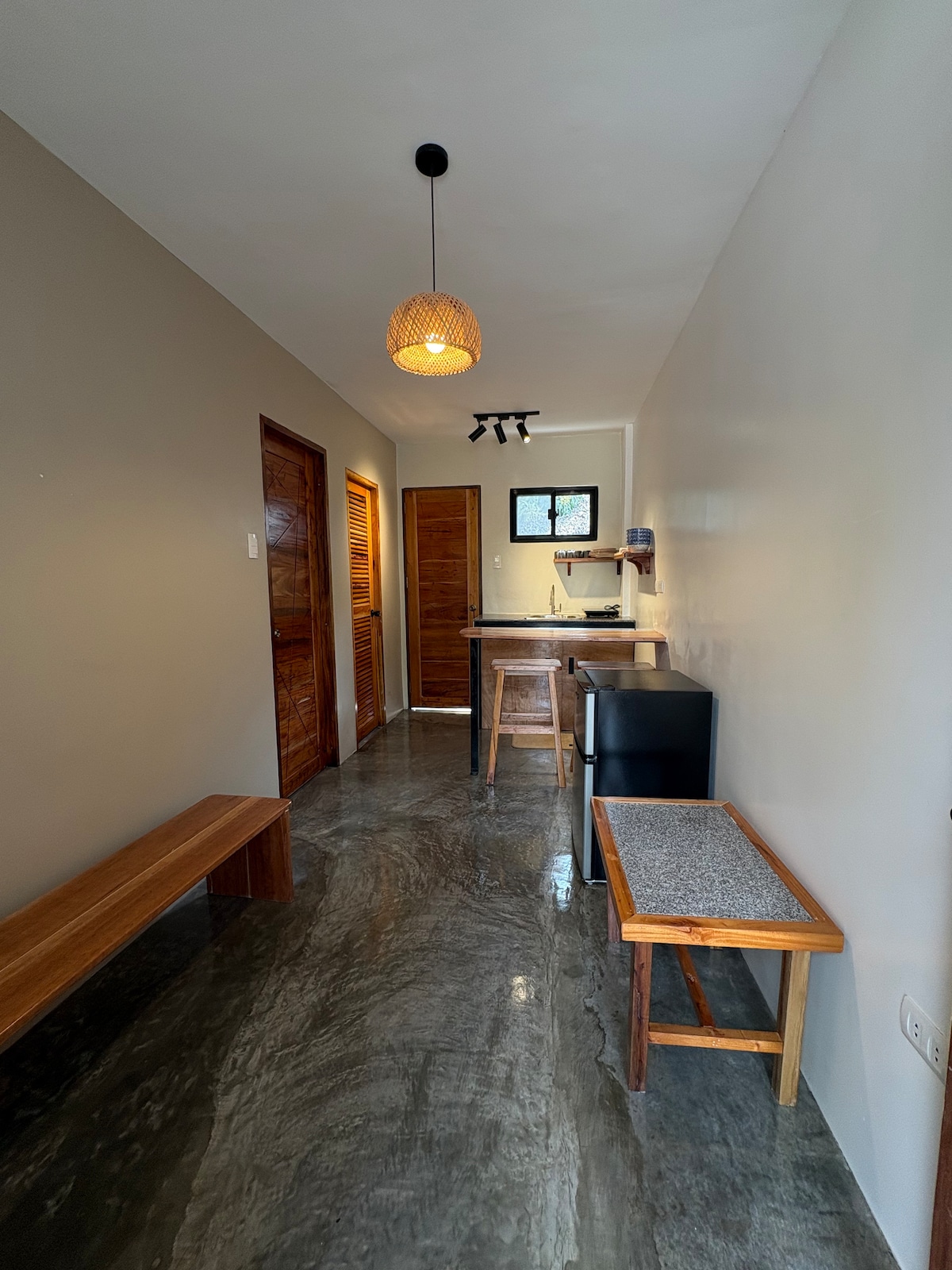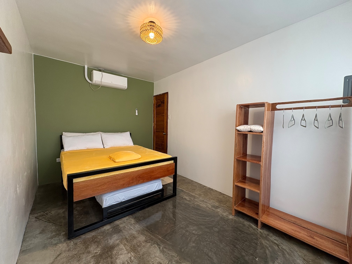 This room is located on the 2nd floor of Utopia Building along Bonifacio Street, Port Barton, San Vicente, Palawan. The room comes with access to its own private kitchen and bathroom, conveniently located just across the hall. Both are exclusively for your use and include cooking essentials, shower necessities, and WiFi for a comfortable and convenient stay.