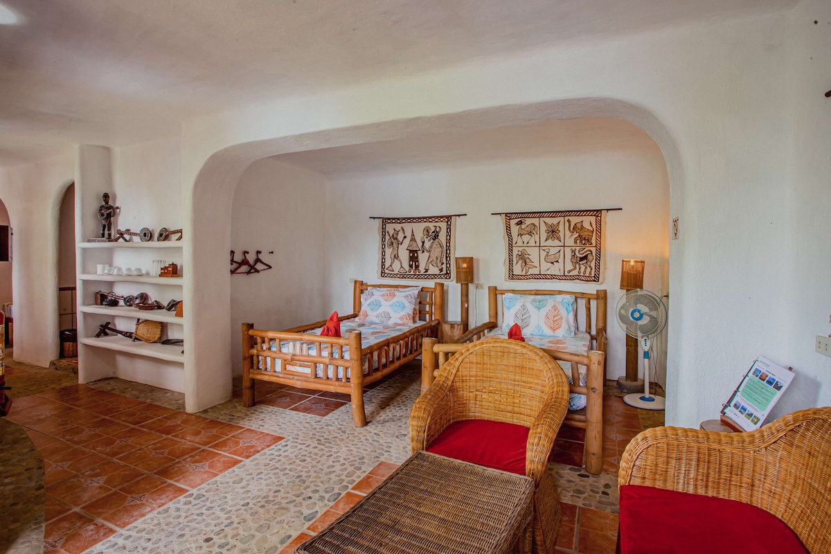 Our small resort is a quiet place with a functional set-up and Mediterranean-Filipino design. On site there is a common kitchen/dining area, large swimming pool and a lavish tropical garden. All rooms are equipped with solar powered air-conditioning and water heaters. First floor rooms have terraces whilst the ground floor ones come with the kitchen. The resort is located in a quiet part of the village, just 5’ walk from the beach and 10’ from restaurant zone.