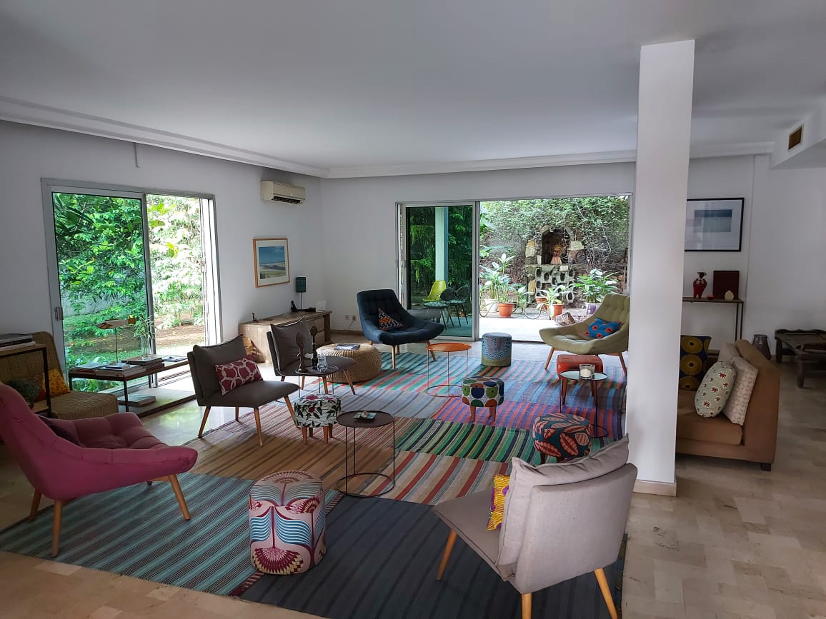 La villa est vaste, lumineuse, colorée, et entourée d'un jardin magnifique avec piscine. Elle est située au cœur des 2 Plateaux, quartier résidentiel et proche de tous les commerces utiles. L'espace est propice au repos, et permet de travailler si nécessaire en toute tranquillité, avec un véritable espace bureau dédié.