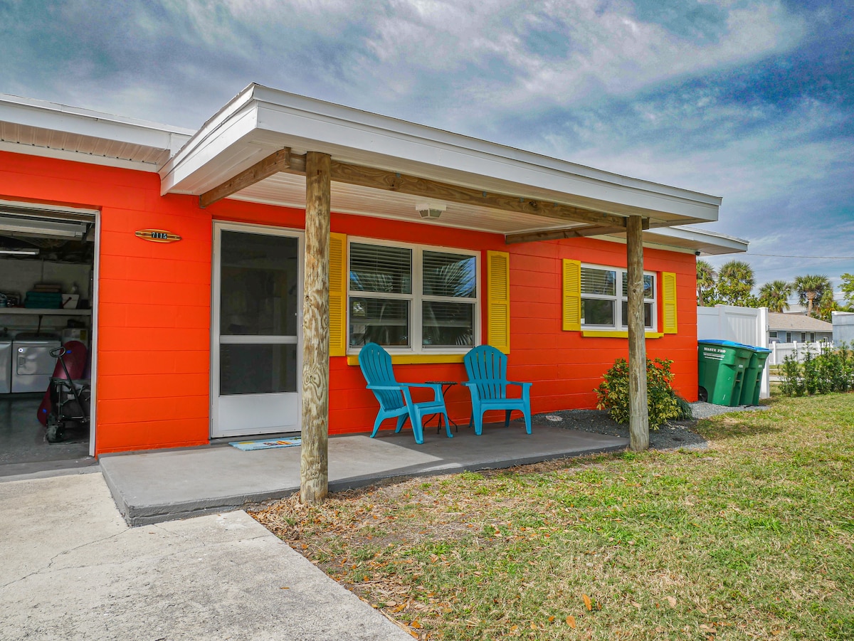 Delicious & cozy 2 bed/2 bath/ kitchen & living/dining-combo intentionally designed for a pampering stay. 1 California King bedroom & 1 queen bedroom, with high-end mattresses & bedding. 4K TV's in all rooms, high speed internet. Relax on the screened porch or enjoy your morning coffee at the front porch. Renovated & fully equipped kitchen. 12-15 min walk to a public beach access with a safe cross walk (4 min drive & easy parking) 30 min to Kennedy Space Center, 60 min to Orlando & theme parks