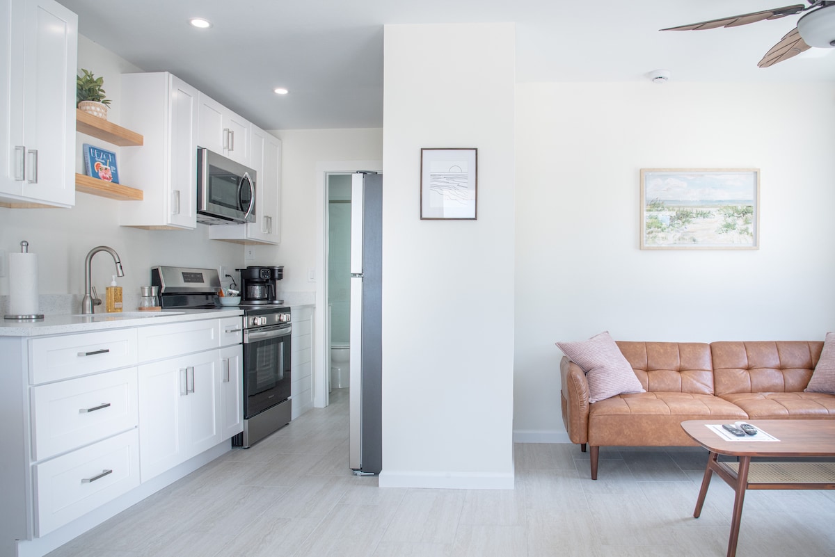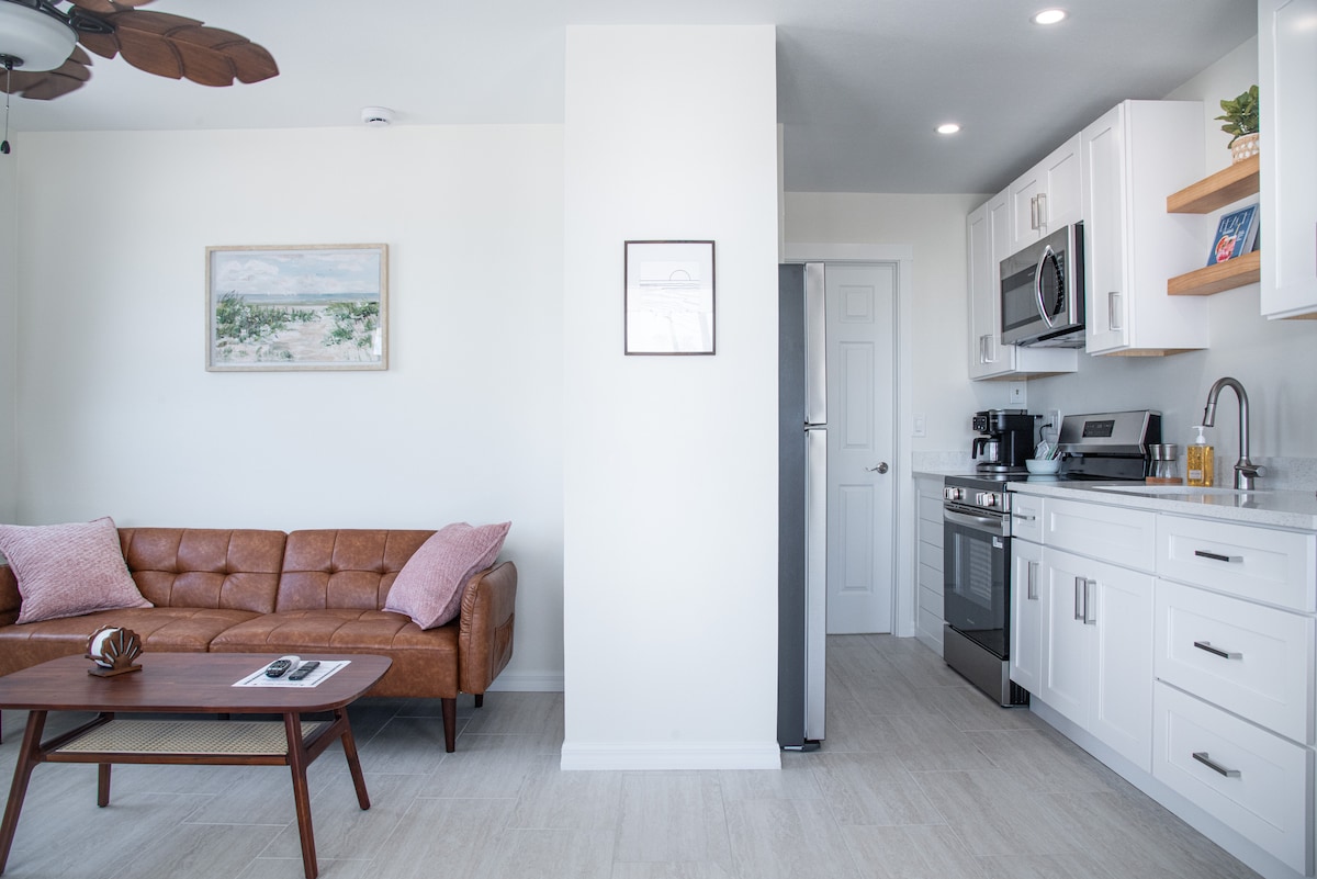 Luxury Studio Apartment with full kitchen, full bathroom, a king bed, and direct access to the beach. The Seafarer Beach Resort is the only adult beachside resort on Manasota Key, FL. We have stunning ocean views from all over the property including from the temperature controlled pool directly on the beach. We are located on Manasota Key, a secluded barrier island, with eleven-miles of beautiful beaches on the Gulf of Mexico, gorgeous sunsets in the evenings, and thriving tropical wildlife.