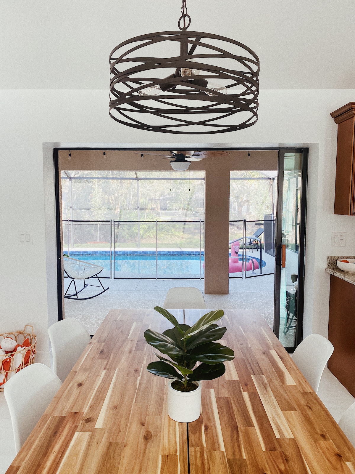 Welcome to Your Poolside Oasis! This bright and modern 2-bedroom, 2-bathroom home features an open-concept living space with vaulted ceilings and stylish wood beams. Relax in the living area,cook in the fully equipped kitchen, or enjoy meals in the dining nook. The primary suite boasts a cozy retreat with plenty of natural light. Step outside to your private screened-in pool and lounge area. Located in a quiet neighborhood close to local attractions!