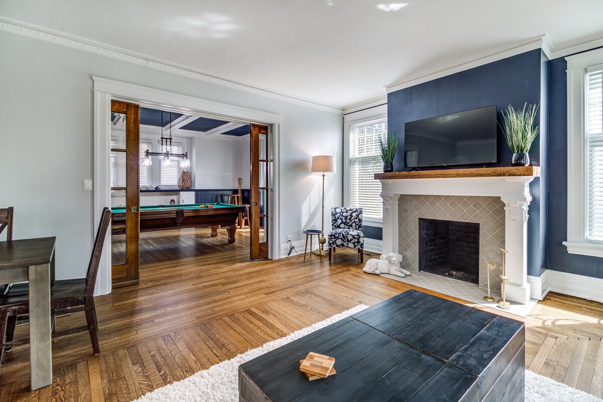 4 bedrooms, 2 full bath, sleeps 8-9, over 2500 square feet of luxury. Fully Renovated (2021) 1915 built stunner. Hardwoods and tile floor throughout. Stunning appointed kitchen with island, TV, breakfast bar, quartz c-tops and beverage cooler. Living/dining room. Billiard room for play. 2 king bedrooms, 1 queen, twin over full bunk. 2 full baths with vanity area. Laundry and large front porch. A 4 minute walk to the beach, 5 minute walk to downtown Port Clinton and 10 minute walk to the ferry.
