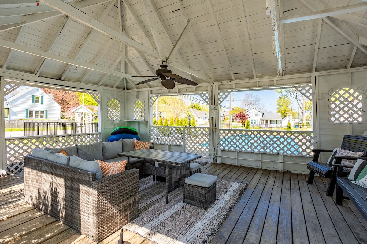 Beautiful like-new cottage completely renovated including a brand new high-end kitchen w/new appliances, quartz & an island. All new flooring, new furniture, beds, even a beautiful new porch! Washer & dryer and Central Air! Clean clean clean & ready for relaxing! Located INSIDE the Lakeside gates, so there is a daily gate/attendance fee for all guests. Refer to Lakesideohio.org for info on pool, activities, lessons, concerts & amenities included in gate fees as well as the Lakeside OH rules.