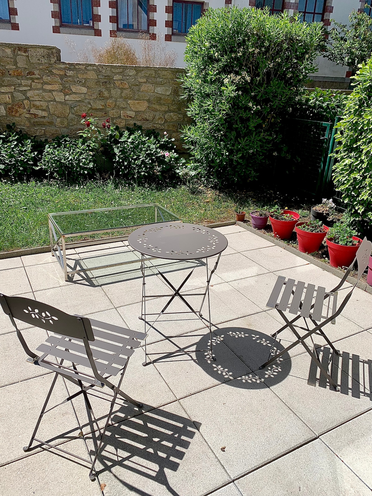 Appartement F2 de 42 m2 avec terrasse de 25 m2,sans vis à vis,plein sud dans une résidence calme et sécurisée.Tout confort,cuisine aménagée,WC séparé,place de parking privée.Couchage pour un bébé ou un jeune enfant.Le linge de maison est fourni .WI-FI.3 mn à pieds de la grande plage, Casino Jeux, piscine.A 2 mn en voiture de la Thalasso.Proche du centre ville et de l'embarcadère pour les îles.Local vélos.Ménage non facturé mais 30 €,à régler à la remise des clés si vous ne voulez pas le faire.