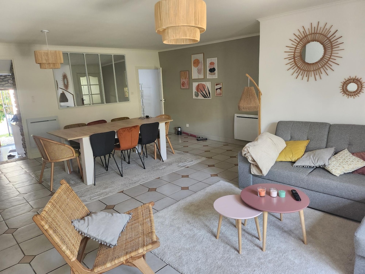Charmante maison de famille de 120 m2 pour 6 à 10 personnes (5 chambres/2 sdb) tout confort sur jardin arboré de 800 m2 et idéalement située : - à 200 m du Port du Crouesty avec ses animations, commerces et restaurants - à 600 m de la plage - à 500 m des supermarchés Les + : Accès wifi, barbecue, cheminée (en parfait état de fonctionnement)