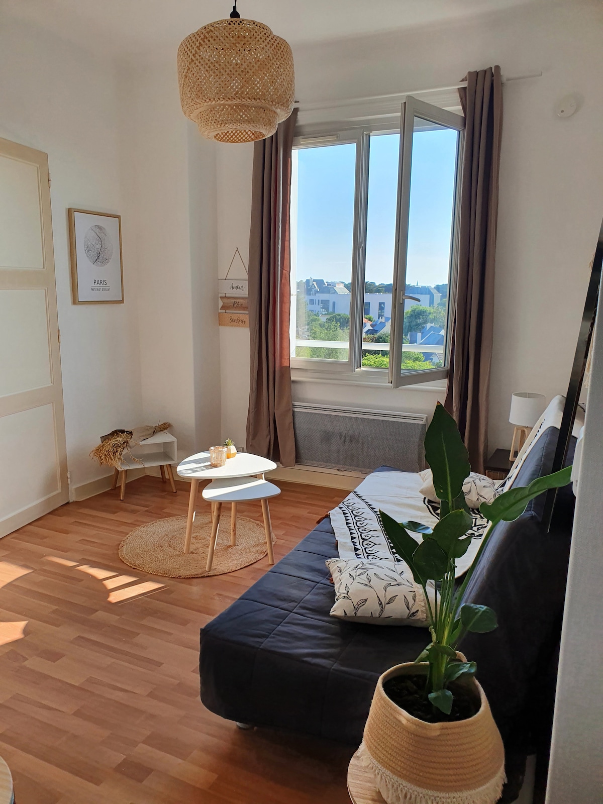 Studio 25m2 très lumineux sur La Baule, quartier Casino. 4eme étage avec ascenseur. Belle vue dégagée sur la ville. Quartier calme. Stationnement aisé + local a vélos. 500m de la plage. 950m du marché. 1,4 km de la gare et 1,3 km de l avenue de Gaulle. PS: surmatelas pour plus se confort et du a qlq retours negatifs sur le matelas initial, mis en place depuis le 30 juillet 2024.