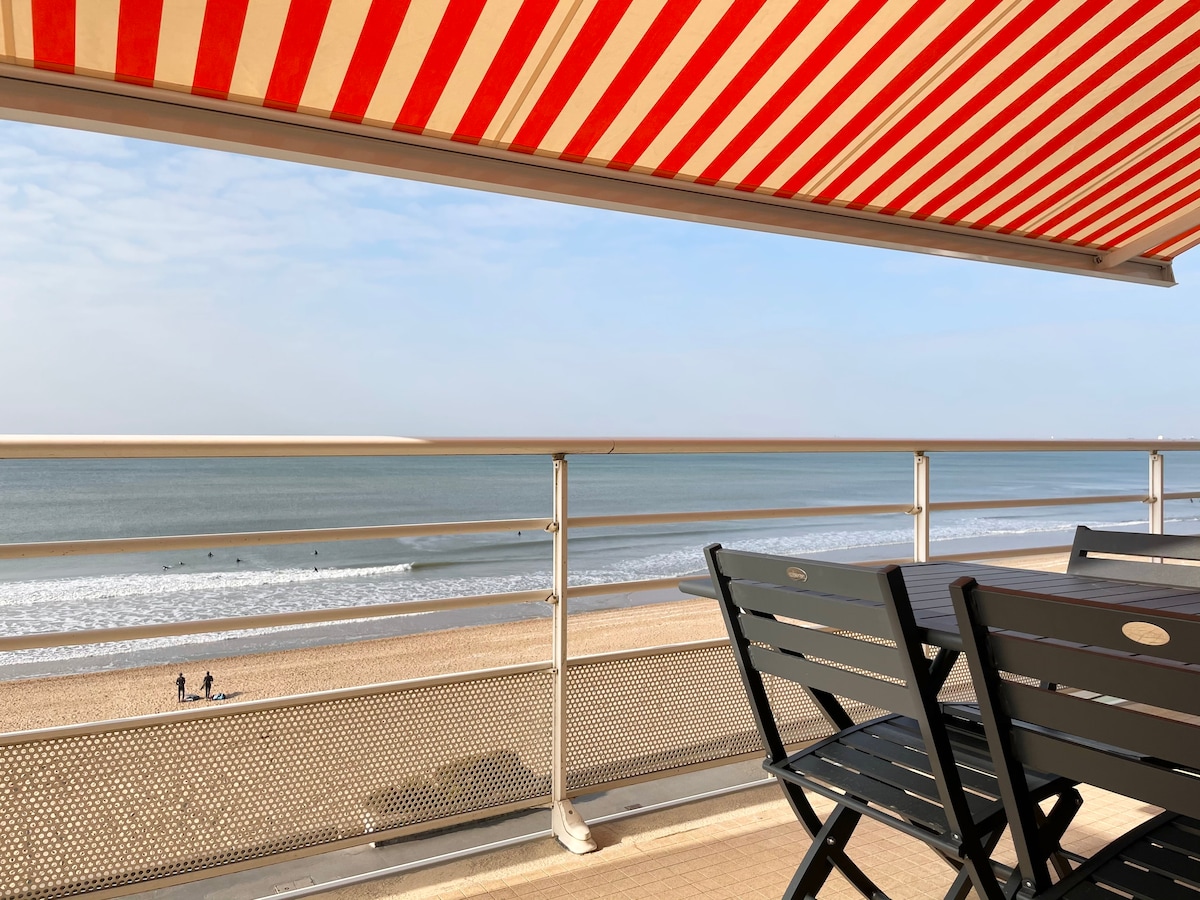 Appartement de 3 pièces ( 75m2) au 6ème étage avec ascenseur face à l'océan dans un immeuble de charme et de standing, l'ancien Grand Hôtel. Terrasse plein sud. Vue magnifique. Le centre ville et le marché sont à 10 minutes à pied. Idéal pour les familles, les amoureux, les amateurs de loisirs et activités. Stationnement facile et gratuit à proximité immédiate de la résidence. Vous aurez l'impression d'être sur un bateau.