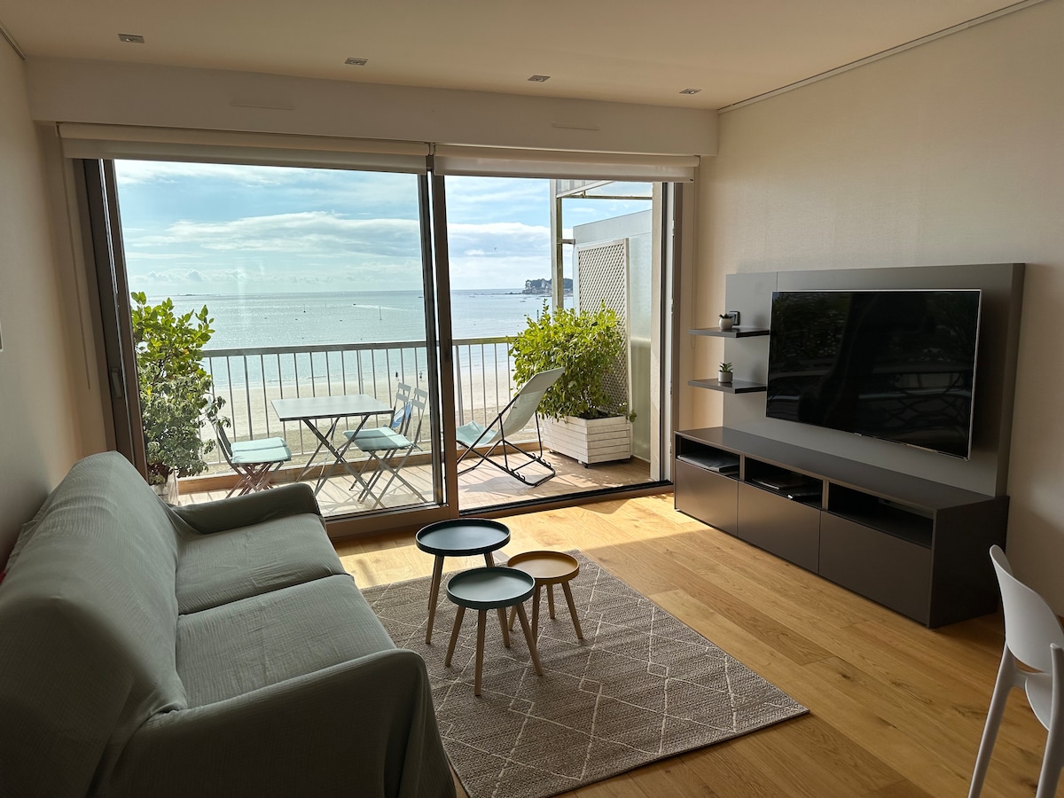 Appartement de standing 40m2 situé à 5mn à pied de plage Benoît à La Baule. Il bénéficie d'une vue imprenable sur le port de plaisance du Pouliguen. Il se compose d'une chambre avec lit double et dressing; d'un salon avec canapé convertible 2 personnes, d’une cuisine entièrement équipée; une salle de bain avec douche, WC et machine à laver/séchante; une loggia avec coin salon et table à manger. Stationnement gratuit et facile autour du bâtiment Location d’1 canoë possible sur place,me demander