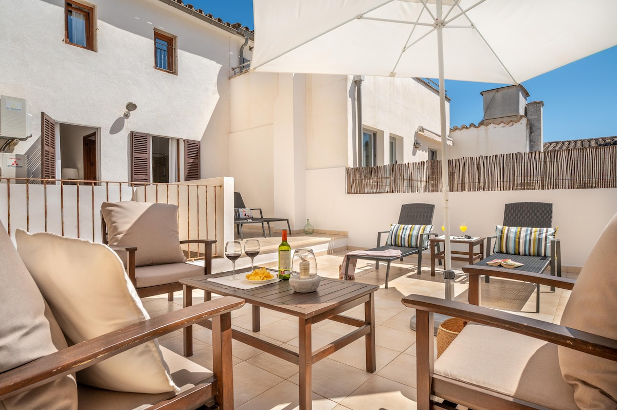 Bright townhouse with a gorgeous roof terrace that has sea and mountain views *rooftop terrace *inside Alcudia's world heritage walls *10/15 minute walk to the beach Nestled within Alcúdia's ancient walls, Can Frare Petit is a rare find. Guests love the open-plan space and two balconies. The private roof terrace has amazing views of the mountains, the old town and the Bay of Pollença. Restaurants are a couple of minutes away. And natural sandy beaches are just a short 10/15 minute walk.