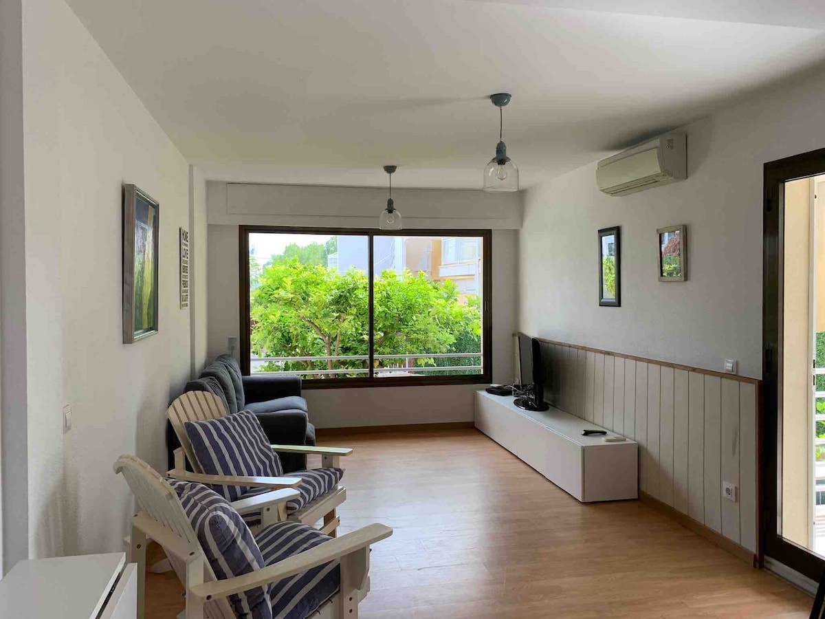 Bonito apartamento de 56 m2 a solo 300 metros de la playa con terraza de 10 m2, Reformado y moderno, cocina totalmente equipada. Aparcamiento propio. En Es Pinaret, zona muy tranquila, a 5 minutos paseando de la playa y del centro del pueblo. Muy cerca del supermercado que tiene abierto todos los días de la semana, de restaurantes y bares. Primer piso con escalera muy amplia, ideal para dos viajeros que quiera disfrutar de la playa, relax, ver naturaleza o hacer deporte por el norte de la isla