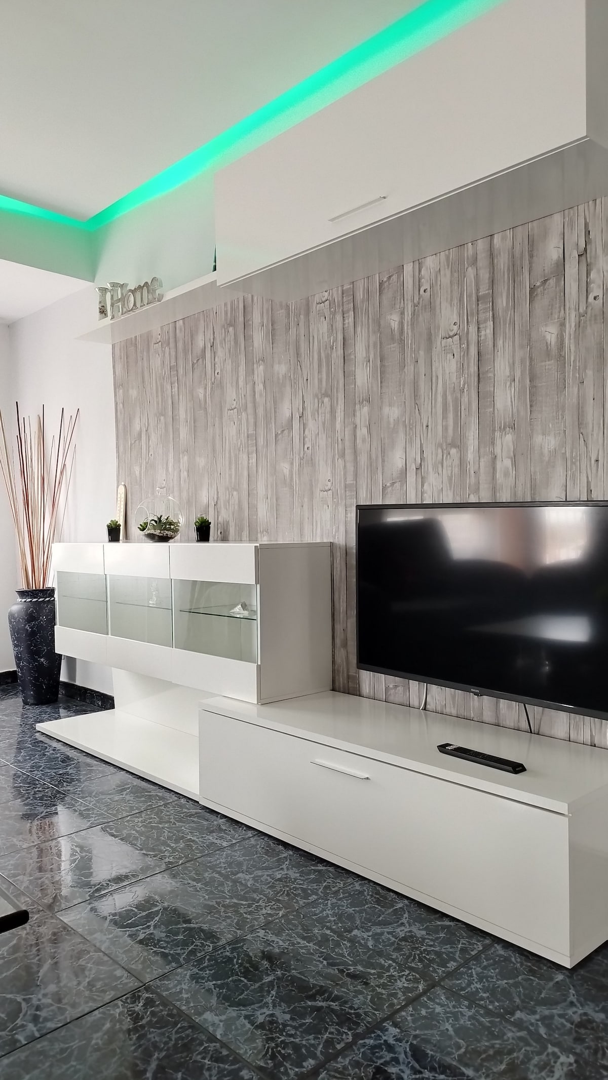 Queen-size Bed (150x200 cm) and Comfy Sofa Bed in Living Room. Modern Bathroom: Recently renovated (February 2020). Fully Equipped Kitchen: Includes coffee maker, microwave, oven, induction hob, dishwasher, washing machine, and new cabinets (October 2018). High-Speed Wi-Fi and Air Conditioning in both the bedroom and living room. 42" LED TV. Perfect for: Couples, solo travelers, or friends.