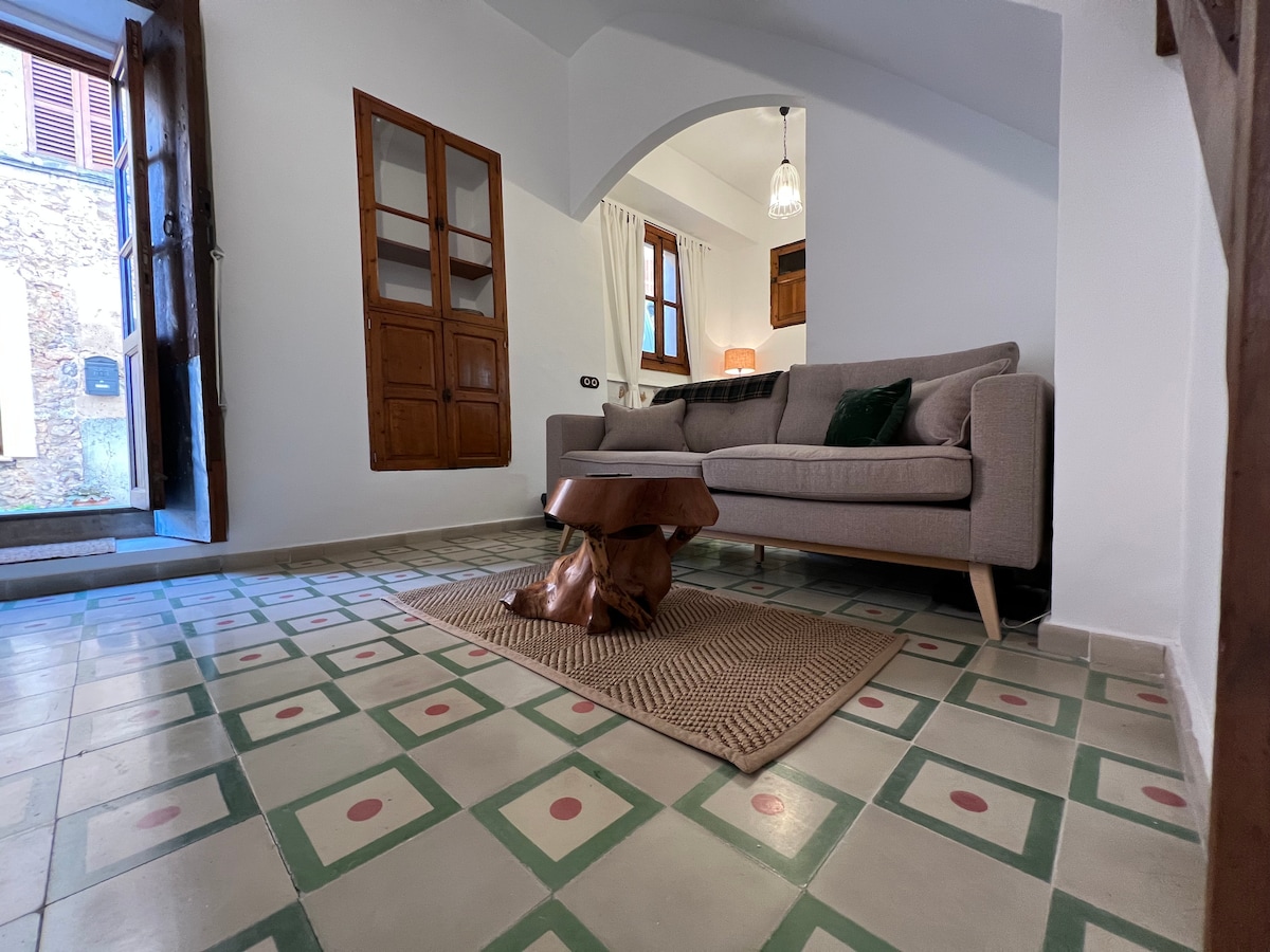 Casa tradicional restaurada y decorada con encanto, en plena Sierra de Tramuntana (Patrimonio de la Humanidad, UNESCO). Antiguamente formaba parte de las dependencias de la Cartuja, donde estuvo hospedado Frédéric Chopin. De día el pueblo es muy animado y al caer la tarde se convierte en un lugar muy tranquilo. En verano hay ambiente nocturno y familiar en las terrazas. Amplia oferta de restaurantes, comestibles y farmacia. Puerto de pescadores a 6 Km con unas puestas de sol maravillosas.