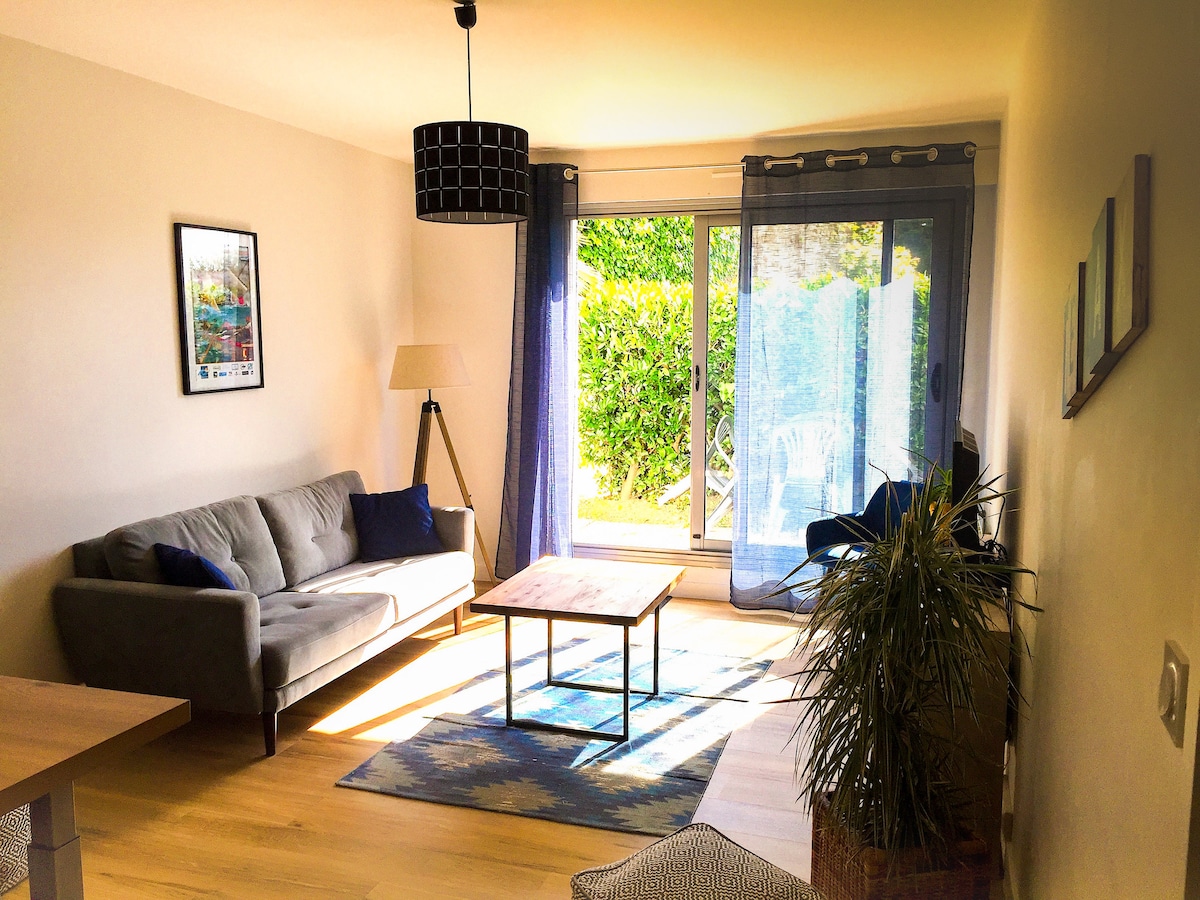 En juillet et août, location uniquement du samedi au samedi. Appartement de 35 m2 au rez-de-chaussée, orienté Est, très calme dans une résidence sécurisée à 2 minutes à pied du port et 5 minutes du centre ville. Place de parking privée. Linge de maison fourni. Arrivée : accueil à partir de 17h30 lundi, mardi, jeudi et vendredi/ flexible les autres jours. N'habitant pas sur place, nous vous proposerons une arrivée autonome.