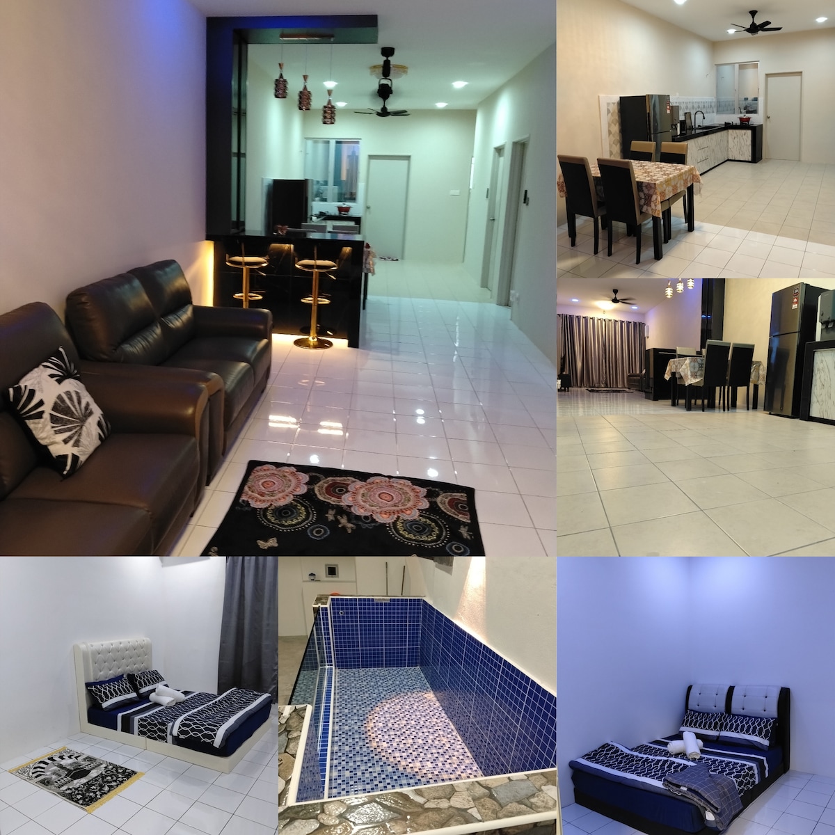 Welcome to our "NEW" cozy, clean & comfortable, spacious Home2Stay Corner house with outdoor BBQ Pit & bathtub. Our home is around 7 mins drive to Port Dickson town & beach resorts-Glory Beach Hotel and Lexis Hotel. All in all a fully furnished house for family & friends to relax, unwind & enjoy. Grilling facilities available. Rooms Room 1: 1 x Queen & 1 x Single Room 2: 1 x Queen Bed Room 3: 1 x Queen Bed Room 4: 2 x Single Bed Room 5: 2 x Single Bed Bathroom: 3 WiFi provided.
