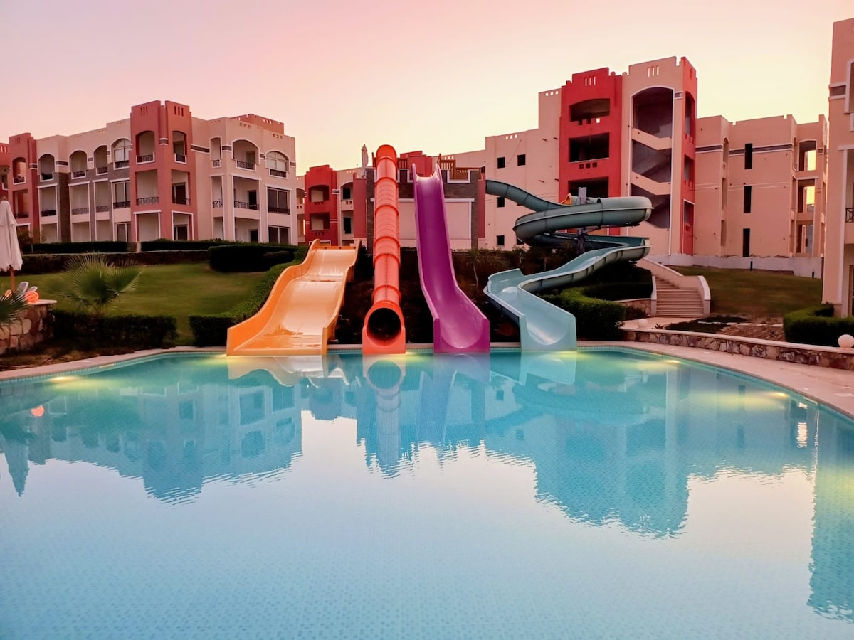 Come & stay in this stunning brand new beautiful beachfront condo. Fully equipped kitchen, beachfront terrace, 24-hour security, gated community, air conditioning, 2 large screen TVs, front desk concierge, on-site restaurant, infinity pools, spa, direct access to the beach, entertainment team, shows, & beach activities. We can help you book and plan all your activities during your stay. Snorkeling trips, glass bottom boats, ATV safari adventures, Bedouin jeep trips, nature parks, and lots more!