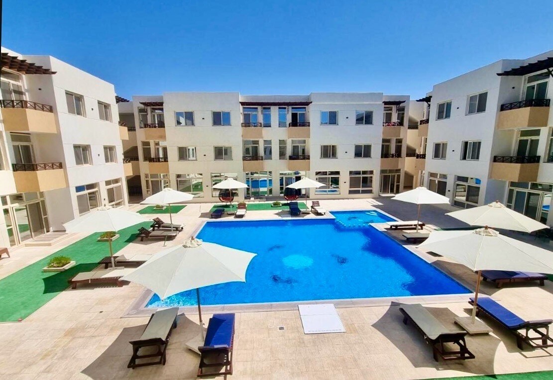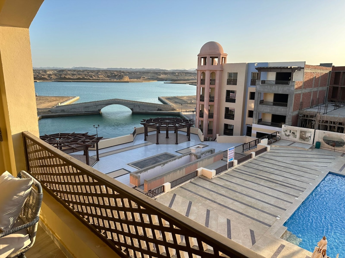 Luxury flat all of it pool view so clean & quite and new next to all the cafes & restaurants & markets & 5 minutes to Marina Port Ghalib and behind Marina view hotel also in front of CIB bank