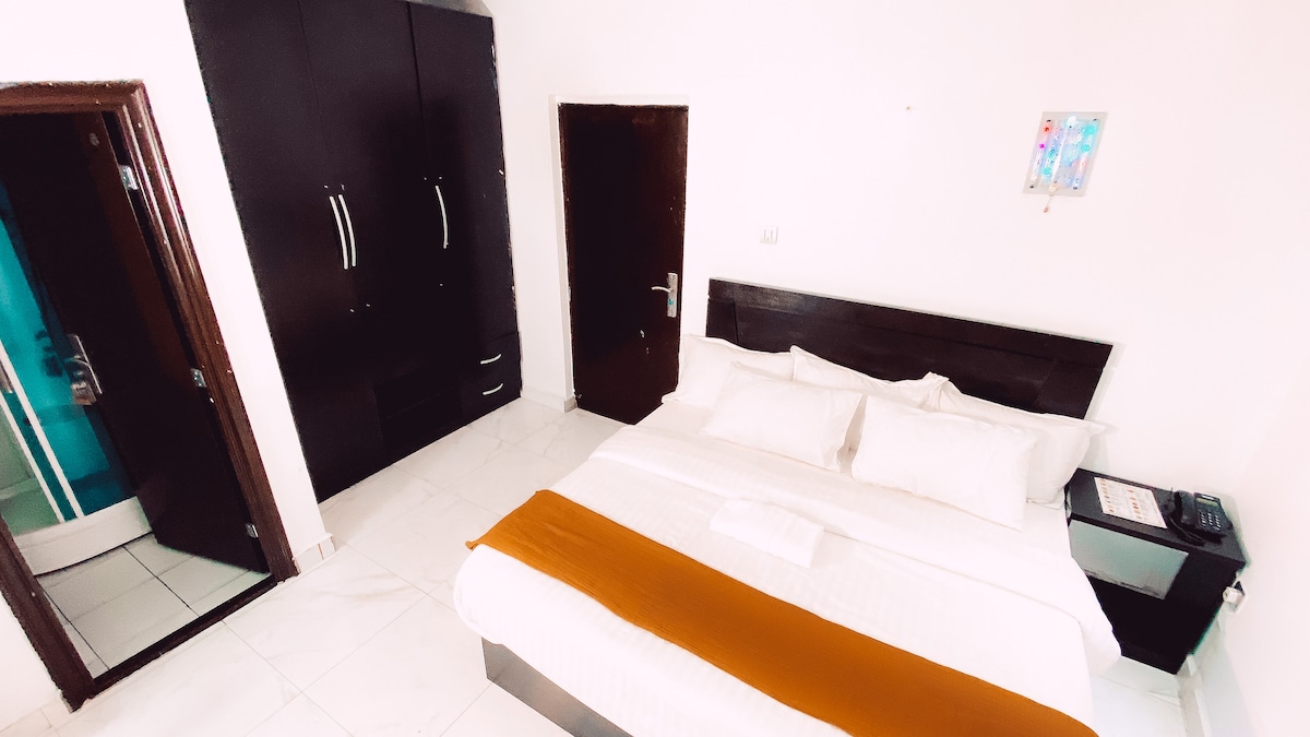 A charming 8 bedroom luxurious boutique hotel and suites with top notch modern facilities and service to ensure you never miss home. The hotel is located in a very secured area, it’s very comfortable with a lovely ambience, beautiful and peaceful neighbourhood in port harcourt close to Golf estate. Our rooms consist of a 6*6 semi orthopaedic mattress, fully furnished and equipped with 43” flat screen television and A.C. Our kitchen is functional with a very good chef to give the best dishes