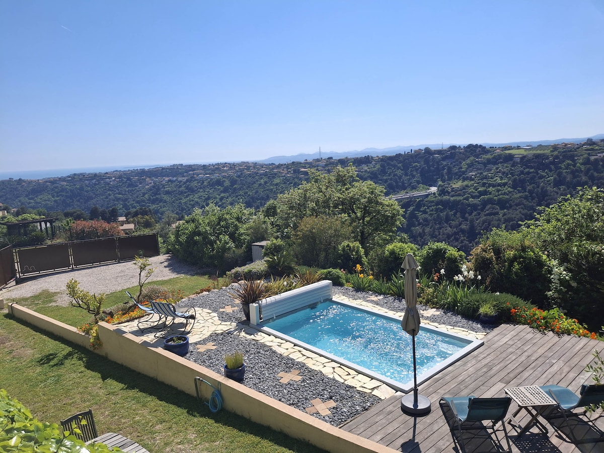 Petit STUDIO très bien équipée avec entrée et parking privé dans une grande Propriété avec piscine et jacuzzi chauffés du 10 avril au 30 octobre . La piscine extérieur et jacuzzi ainsi que le jardin sont partagés mais assez grand pour profiter chacun son espace de tranquillité . Je vis dans la bastide principale . Un Havre de Paix entouré d oliviers centenaires . A 35 minutes de l aéroport de Nice et divers villages provençaux et 14km de Cannes . Tele grand écran /abonnement Netflix
