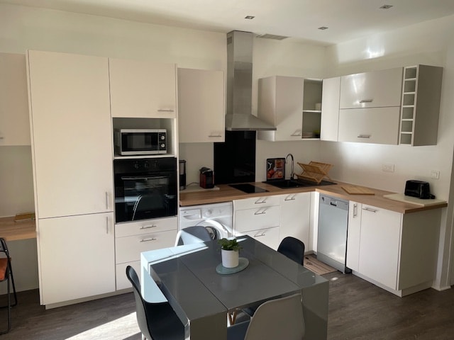 Last floor apartment, dominating the town center, with a panorama on roofs and hills! Sunny from the sunrise to the sunset, it has a large and peaceful 47 square meters terrace (+ a veranda) and an interior of 54 square meters recently renovated, in impeccable state.