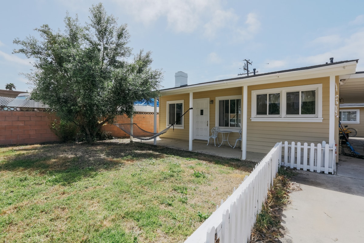 Welcome to this charming, fully equipped studio cottage, with an expansive outdoor patio. There's a full kitchen, AC/heat, gas BBQ grill, and Queen sized bed with a new memory foam mattress and luxury linens. Head to the beach just over a mile away. Visit the Channel Islands National Park. Located in residential midtown Ventura it's a bit over 2 miles to vibrant Downtown Ventura and a short drive to Ojai and Santa Barbara.