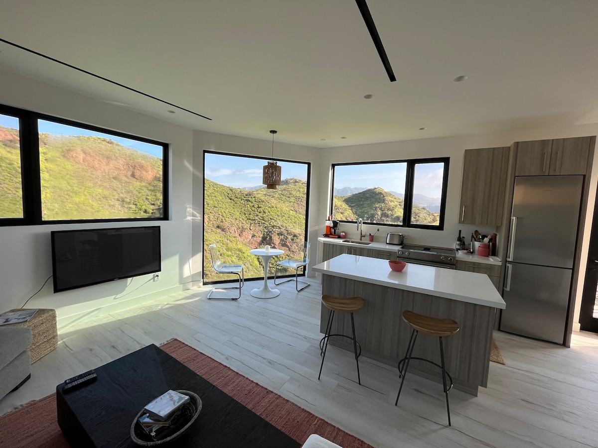 Escape from everyday life to Malibu Hideaway! Nestled in the hills with breathtaking views of canyons, mountains, Lake Sherwood & several cities as far as the eye can see! Our furniture is hand made from sunny California reclaimed wood. Our organic luxury hybrid mattress is foam/coil for ultra comfort. Fluffy down comforter in cold months. The suite boasts a vintage style tub, record player, faux fireplace, Keurig, microwave, mini-fridge, 55 inch smart t.v, table/chairs, antique tea table.