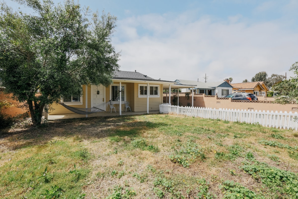 Welcome to this charming, fully equipped studio cottage, with an expansive outdoor patio. There's a full kitchen, AC/heat, gas BBQ grill, and Queen sized bed with a new memory foam mattress and luxury linens. Head to the beach just over a mile away. Visit the Channel Islands National Park. Located in residential midtown Ventura it's a bit over 2 miles to vibrant Downtown Ventura and a short drive to Ojai and Santa Barbara.