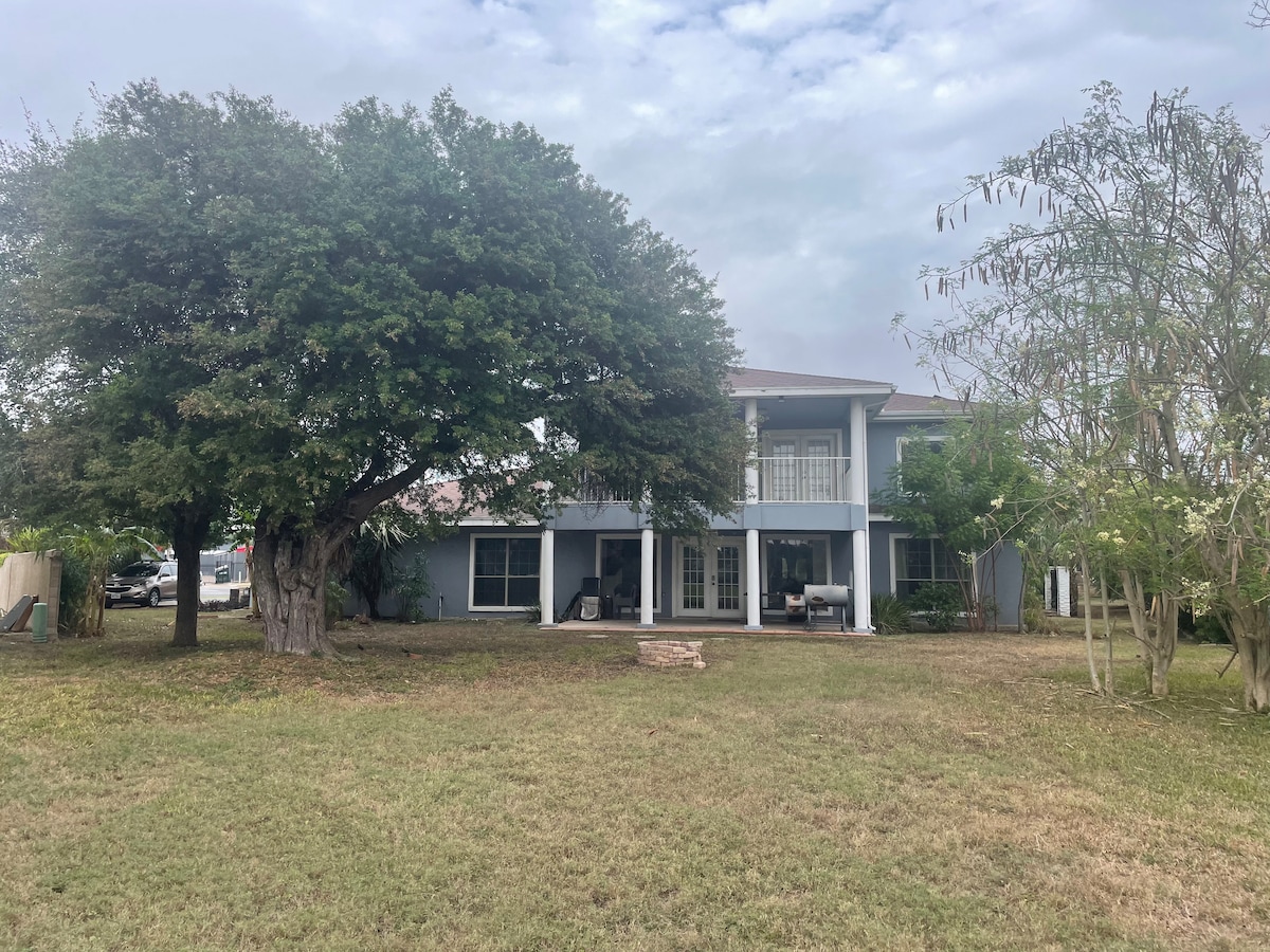 Centrally located. Quiet and relaxing setting. Situated on 3 city lots. Player piano. Fully equipped kitchen. Table settings Rocking chairs Screened in porch. Recliners Netflix, Prime, Hulu, Record player, Karaoke, Water Softner, Reverse Osmosis, Trees, 🦜 Parrots, West Rail Trail Easy drive or walk to downtown Brownsville eateries and nightlife, zoo, farmers market, hospital and grocery stores. Approximately 25 miles to South Padre Island, Boca Chica Beach, and Space X. Minutes from Mexico too