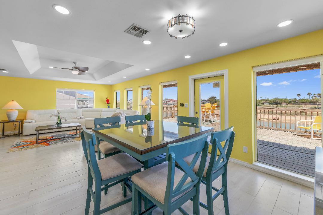 A fully renovated modern farmhouse with an XL pool (with slide) sitting on a breathtaking resaca. Enjoy two living room areas, three gorgeous bedrooms, and an office. Plenty of dining space with breakfast nook, formal dining room and bar. Located just a few blocks from the Sunrise mall, shopping centers and a short drive to South Padre Island / spaceX.This luxurious elegantly designed home is equipped for families of all types and includes games and home theatre options for entertainment. *PS4