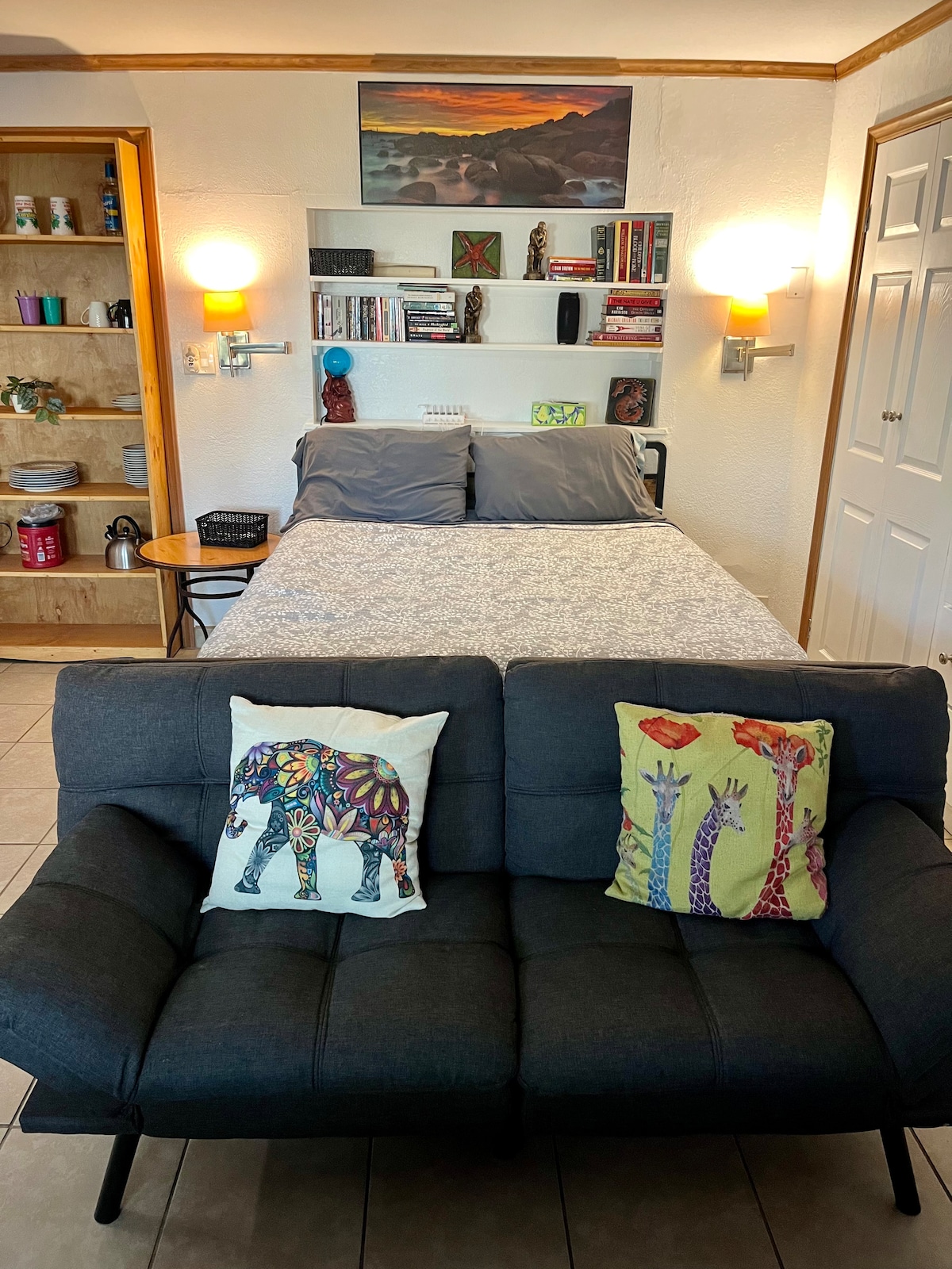 The Grotto is the downstairs half of a vintage beachside beachhouse owned by "the sandcastle lady" - sandy feet. With 1 bedroom and 2 full baths, it can accommodate up to 5 guests comfortably with full kitchen, spacious living area and enclosed patio/dog rest area. Fully equipped for your best pal with a large pet door and an even larger kennel. Beach toys, boogie boards — everything you need for your Padre vacation in one place. Let's build a sandcastle - that is what your hosts are famous for!