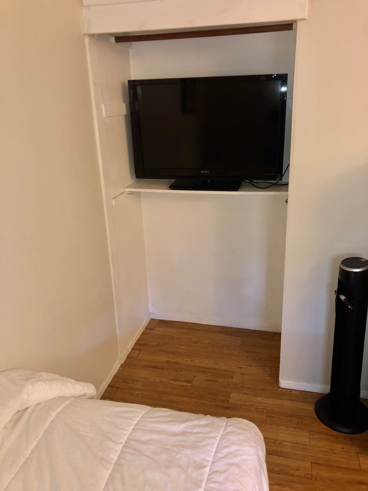 This apartment is our guest room with outside private entrance and off street parking. Apartment has a refrigerator, microwave, coffee maker, and toaster oven. Queen bed and a twin pullout couch bed is provided. The place is appropriate for a short stay as an affordable alternative to hotel stay.