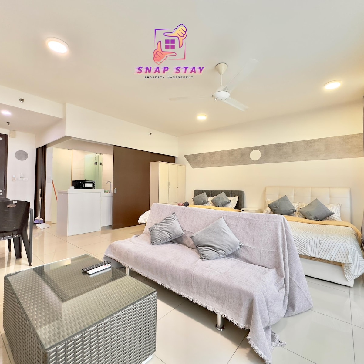 1. Can accommodate 2~3 paxs (additional single foldable mattress +pillow provided)@1 bedroom + 1 bathroom. 2. Bathroom with water heater,shampoo,body bath,towels are provided. 3. 40inch TV(temporary can't see channel-start oct19) 4. Free 1 car Park , 5. Swimming pool ,playground At the 2nd Floor 6. Walking Distance to i City shah alam .Convenient like 7-11 located at UG Level. 7. Check In Anytime After 3pm with self check in method , Check out Anytime Before 12pm. 8.No Netflix💥only Wifi