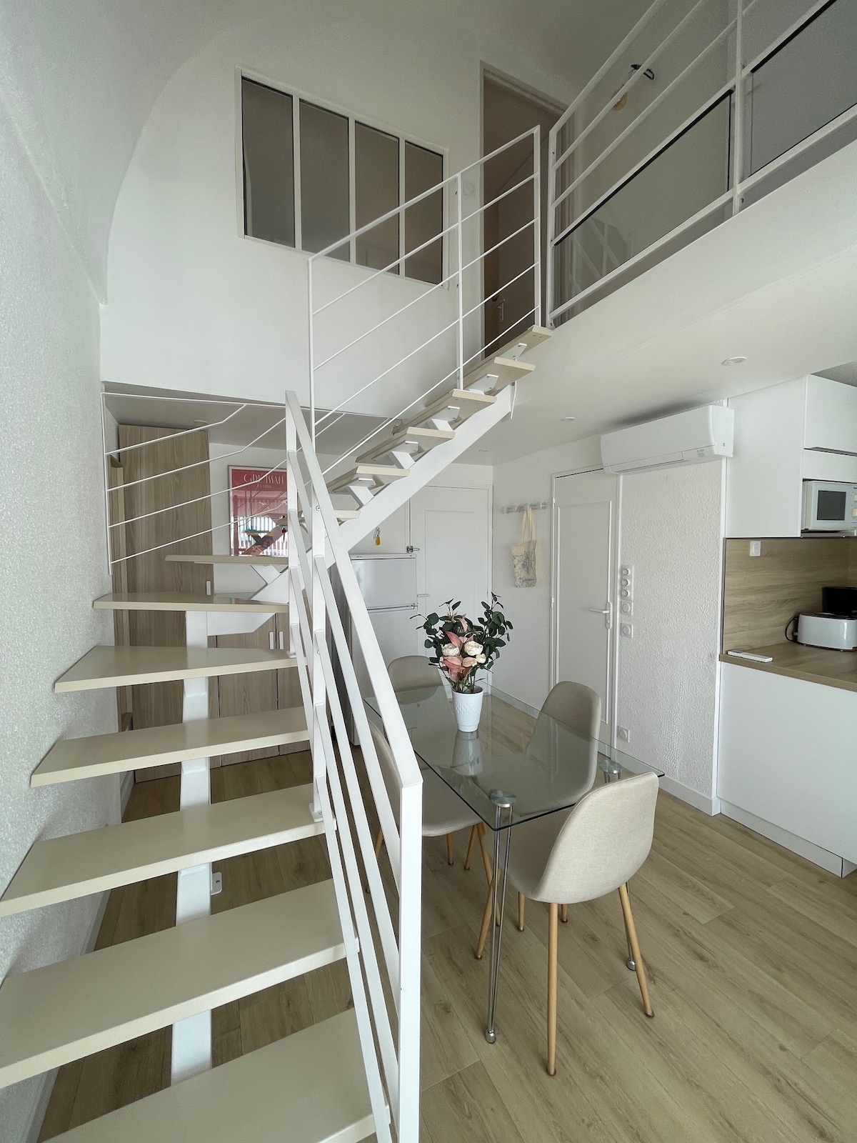 Logement situé au 1er étage sur 1 dans résidence calme avec place de parking attitrée et grande terrasse. A 100 m des premiers commerces de proximités, à 2 minutes de la plage à pied. Équipé du Wifi, d'une climatisation, d'un lave linge, d'un frigo congélateur, d'un four micro onde, d'une grande Télé avec Chromecast. Il dispose d'une chambre avec un lit double neuf et très confortable ainsi qu'un dressing, un canapé convertible dans le séjour. Idéalement placé et entièrement refait à neuf.