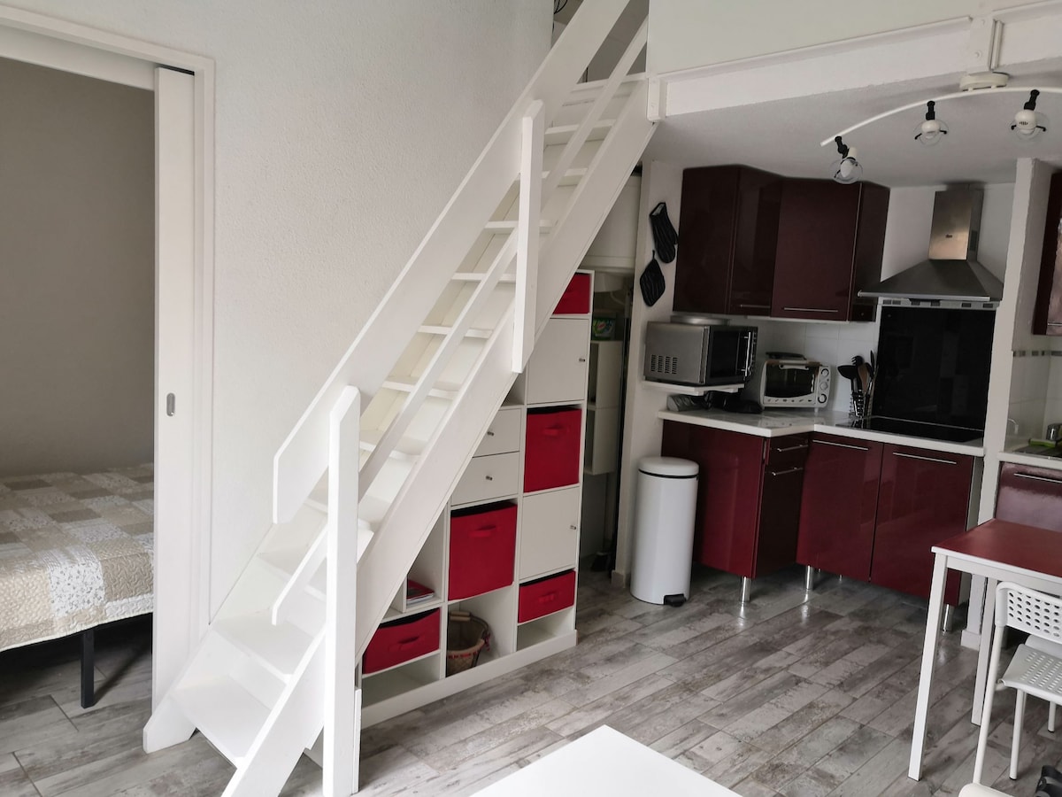 A 2 km du centre du Grau d'Agde et à 800m de la plage (piste cyclable), petite villa (35m2) F2 indépendante située dans une propriété familiale. Secteur camping Les Sablettes logement composé de _pièce à vivre avec cuisine équipée, convertible en 140 cm (idéal enfant), table et chaises _ chambre avec lit en 140 cm, télé. _ salle de bain attenante à la chambre avec douche italienne _ Jardin 80m2 clos avec place parking et terrasse équipée. -clim et wifi - serviettes de bain et draps fournis