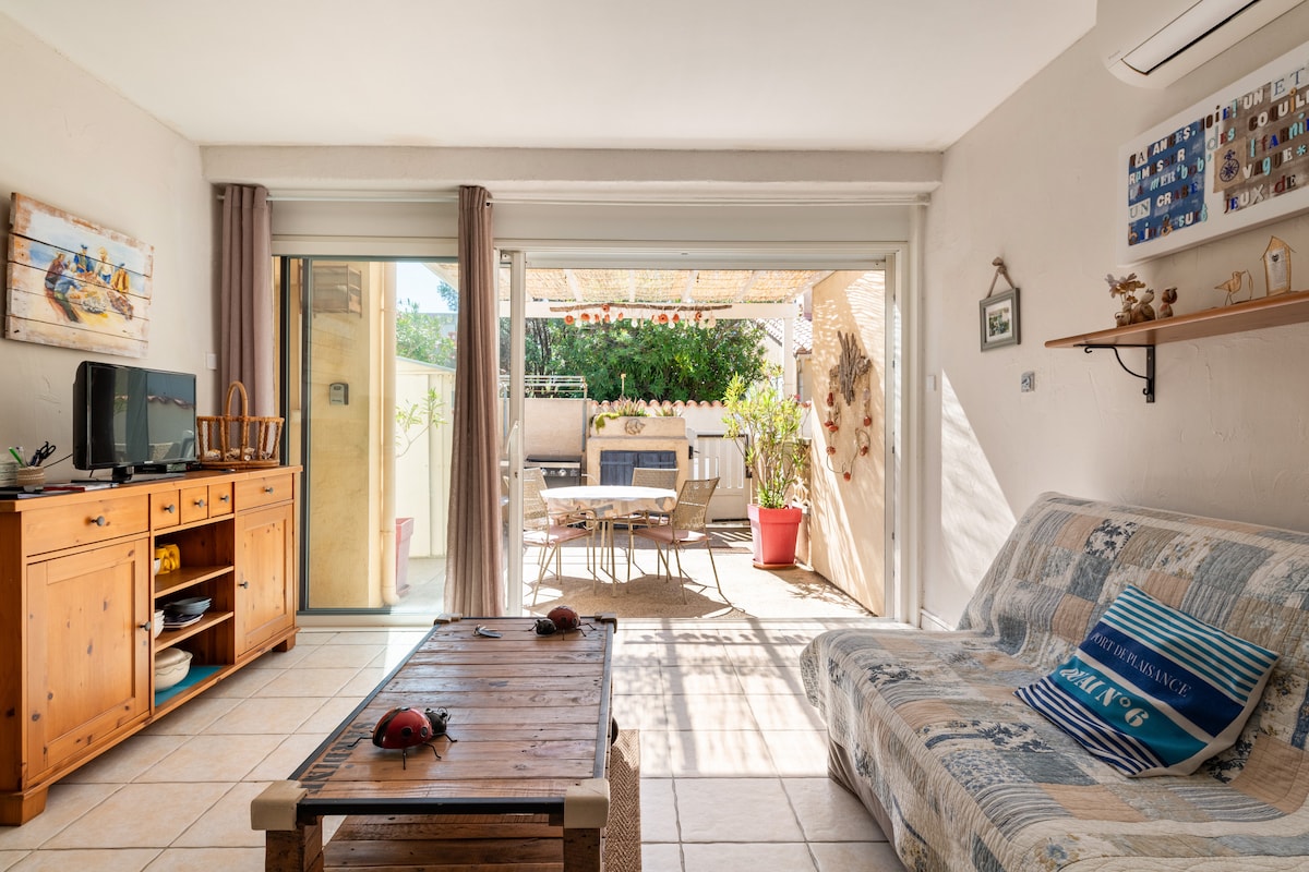 La climatisation est enfin disponible ! Venez découvrir Port-la-Nouvelle et sa plage de sable fin ! 🏖️☀️ À moins de 5 minutes à pied de la plage et à 3 minutes des commerces (traiteur, Spar, pizzeria, boulangeries…) Pas besoin de plan, de stress ou de GPS : vous êtes en vacances, et tout est à portée de tongs 😎 🏡 Située dans une résidence calme et sans issue, avec parking à disposition, cette maison est parfaite pour un séjour en couple, en famille ou entre amis